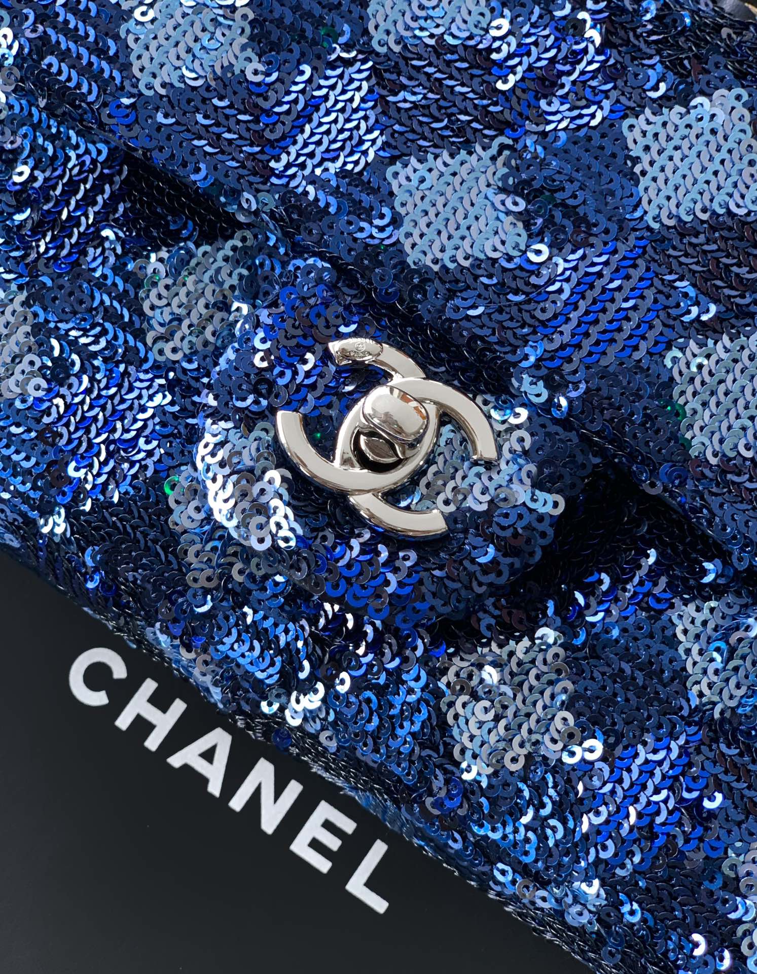 80 blue square 20 cm “Sequin Embroidery” OHANEL 25p sky blue dense sequins, shape CF super glitter sequins package with summer filters, SO BLACK is so cool that it’s so beautiful. It’s a rare hot-selling sequin. It’s very cost-effective. It’s the most worth buying bag this season. The color sequins are spliced, sparkling and cute, which magnifies its charm infinitely🫡🫡Elegance and fashion are synonymous with it. It’s also very suitable as an evening bag. It’s a bag that can be treasured for a lifetime. 20cm