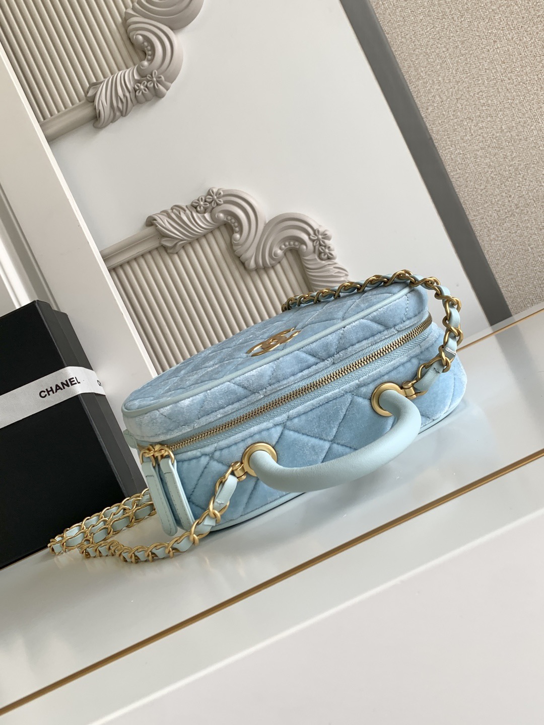 780 26C series blue suede CF bag, classic diamond pattern + light gold hardware, retro and high-end! The suede is