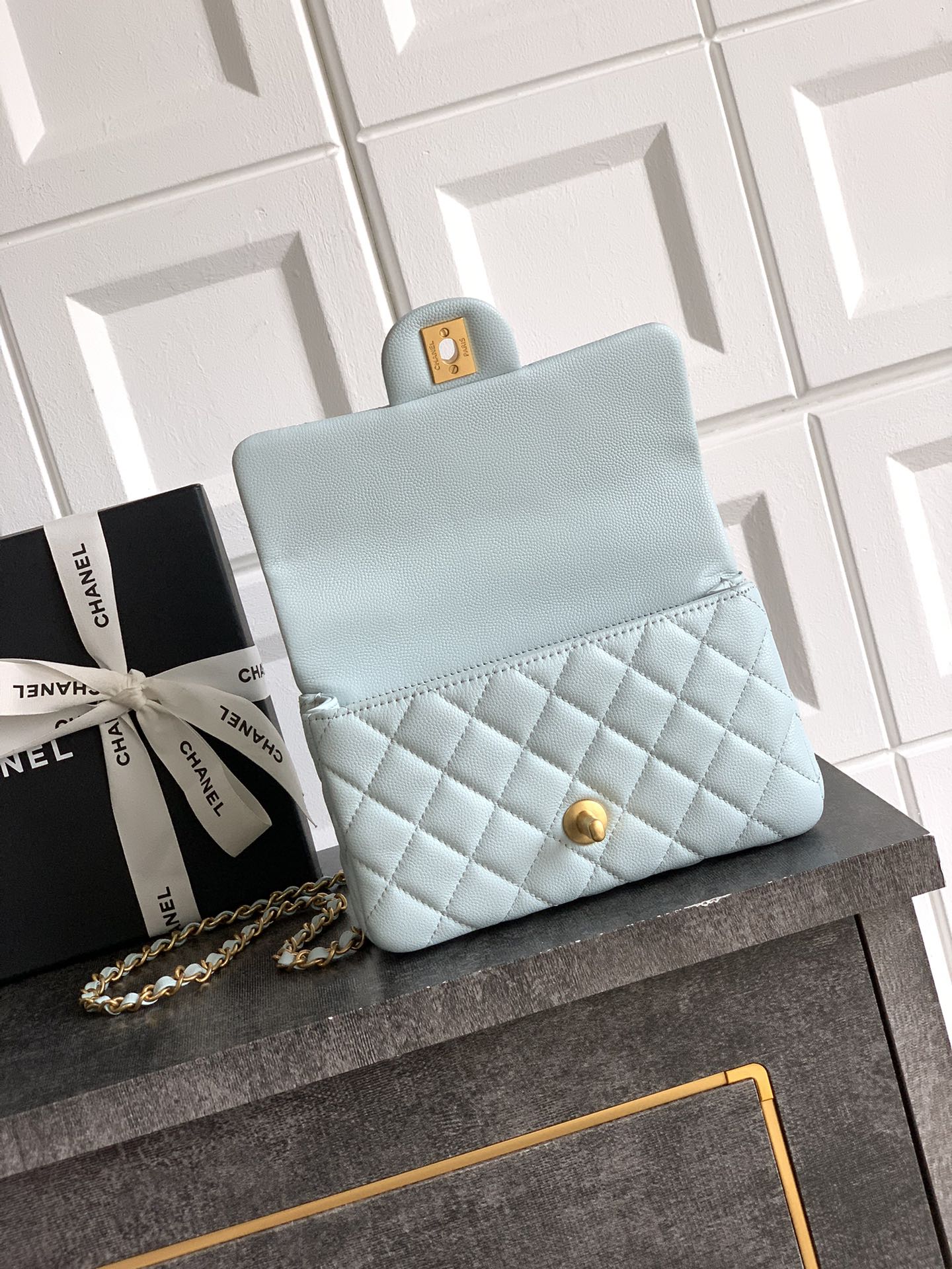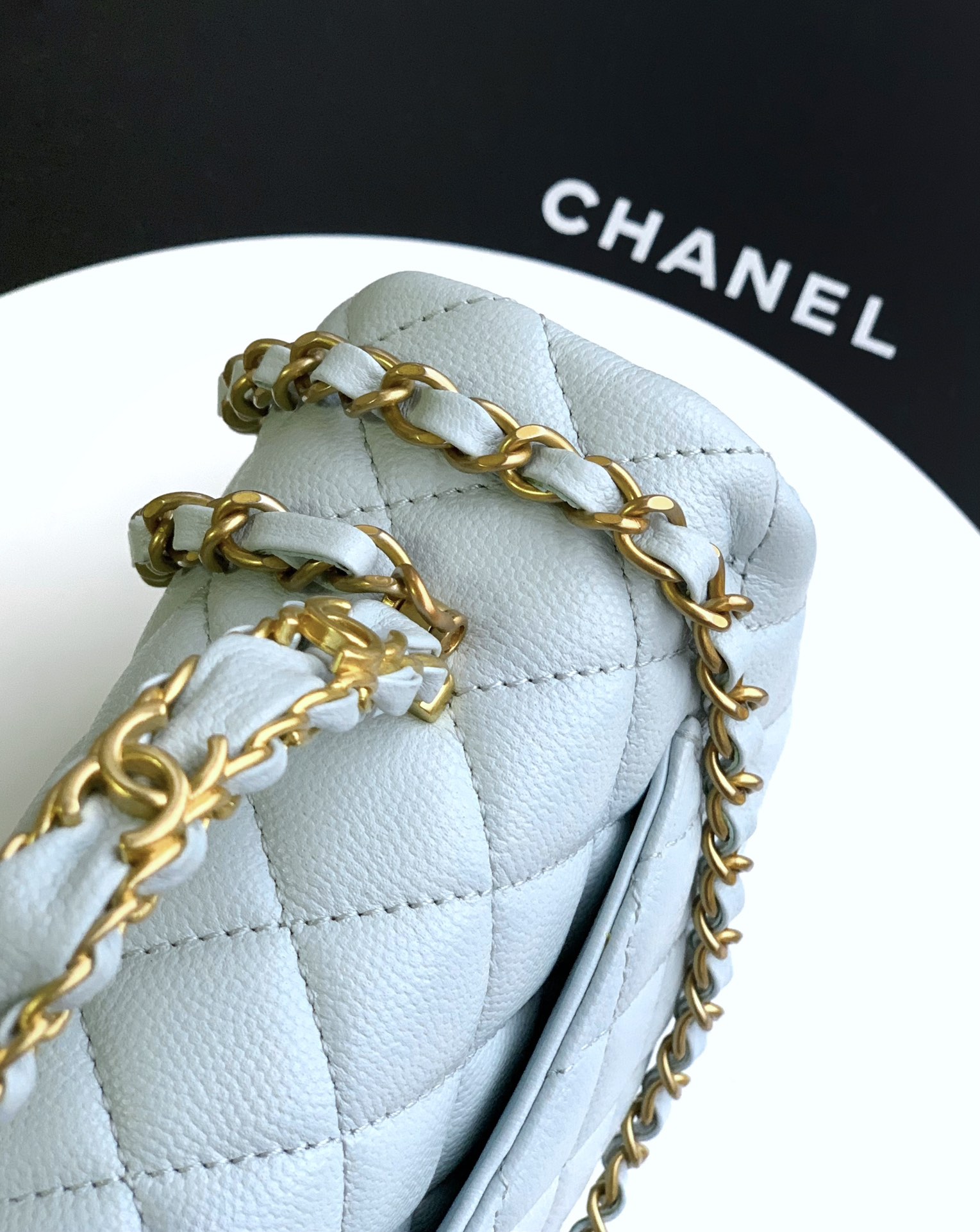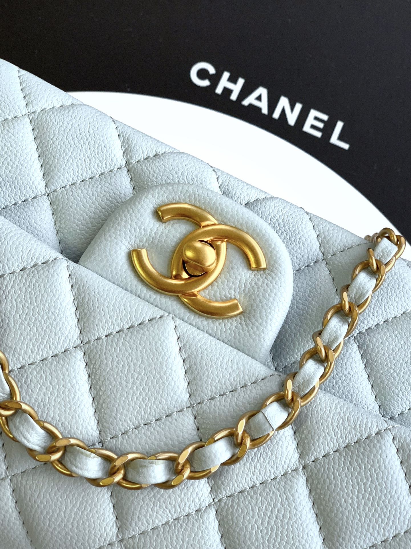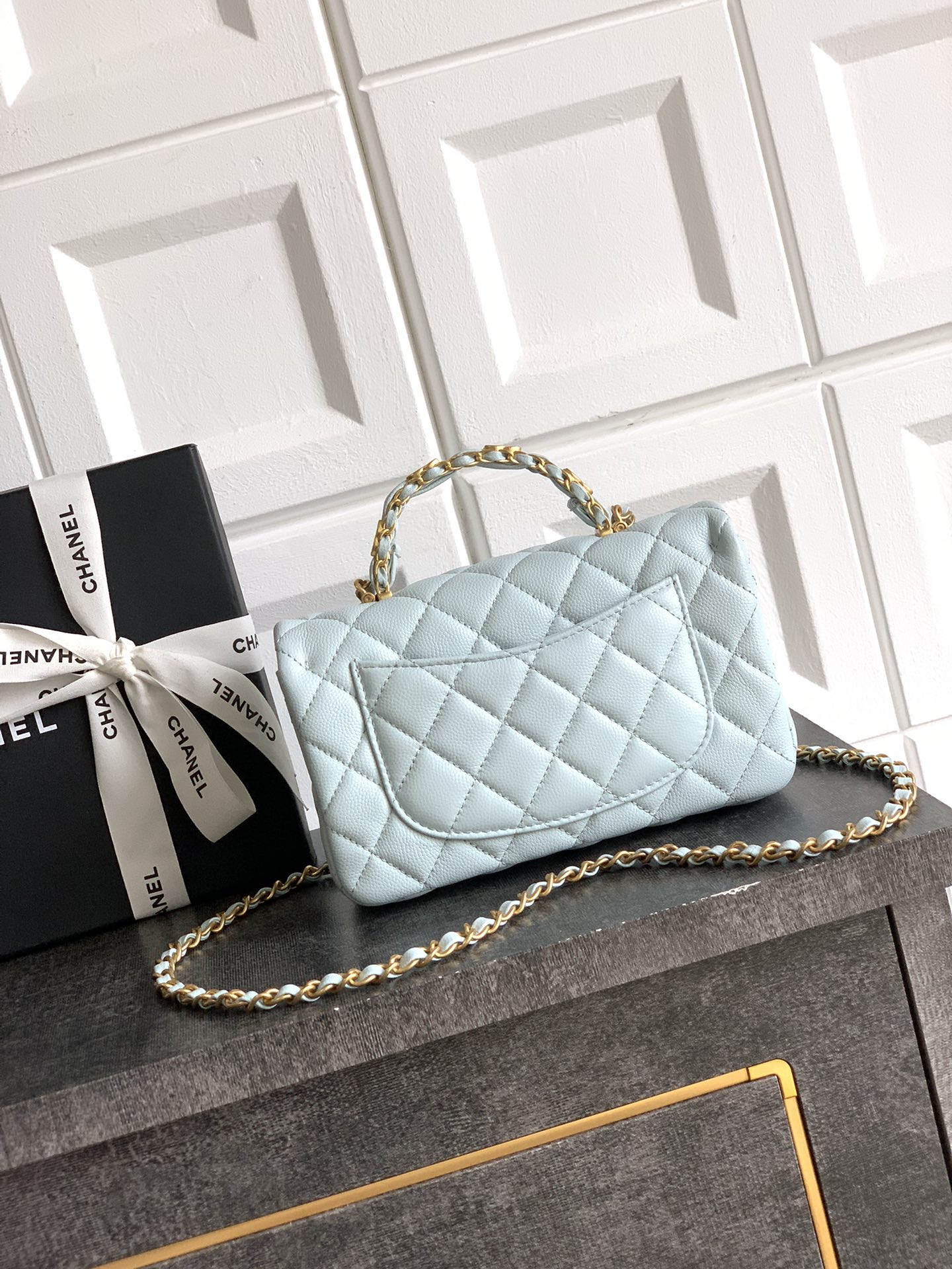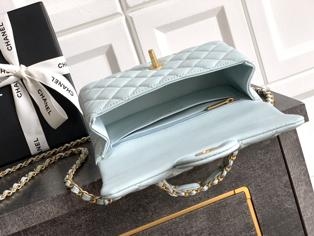 800 “Baby Blue” “Small Size” OHANEL25B’s seasonal lychee leather handle CF large mini upper body! It is definitely a bag from yyds this season. The leather chain handle is very classic and not fancy. This bag is really perfect! It is a bag that can last a long time. The new cowhide handle on the cfhandle is really beautiful. The handle of the double C logo pendant is very classic. I think many people will like it
