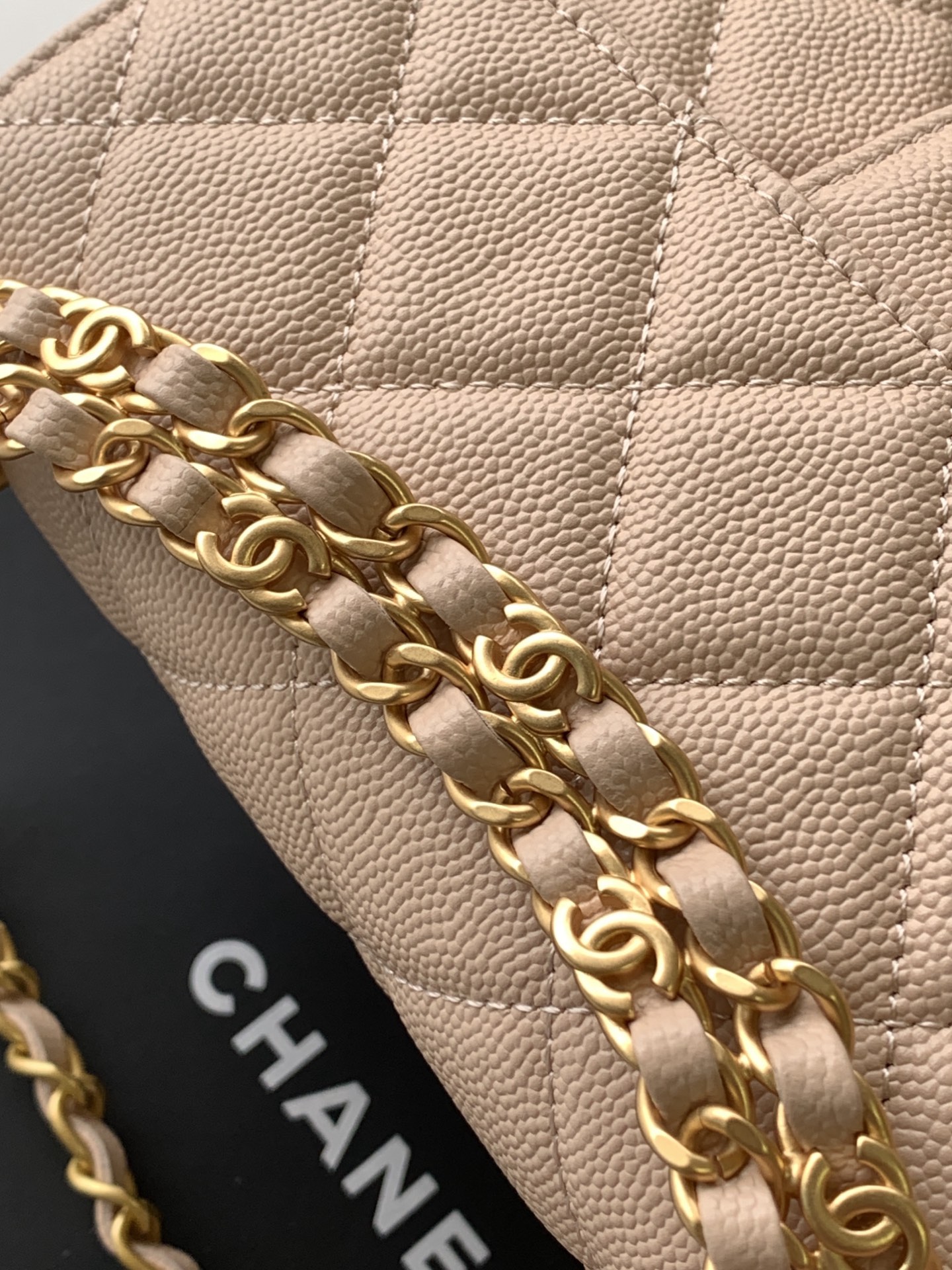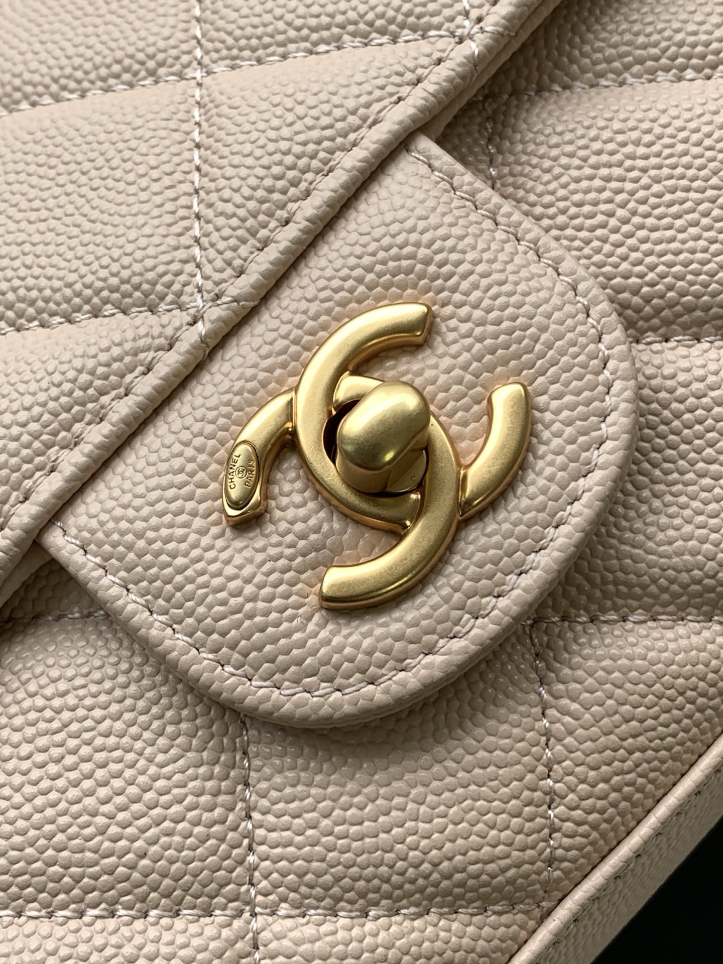 800 25p double chain caviar. I didn’t expect to come across the 25p double chain lychee beef. I bought the small size and the CF large mini for the limited season. I feel very similar. I am so happy. I like it. The cowhide is softer and more casual than the CF small size. I am happy to have my first Chanel model number AS52.