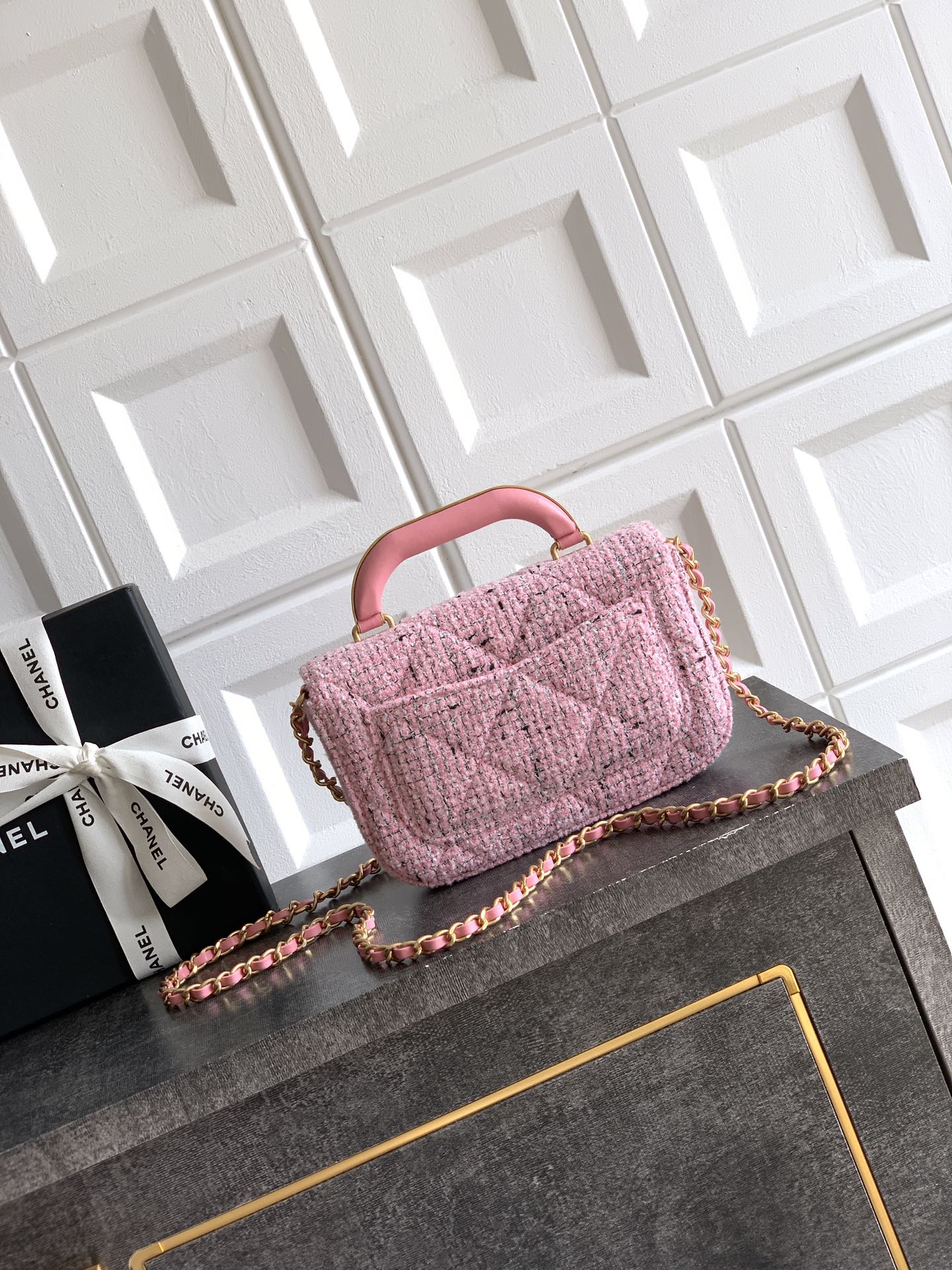 860 Pink "Pure Cotton Needle 🪡 Fabric" OHANEL Flap Bag K Show Same Style ️Handle Port