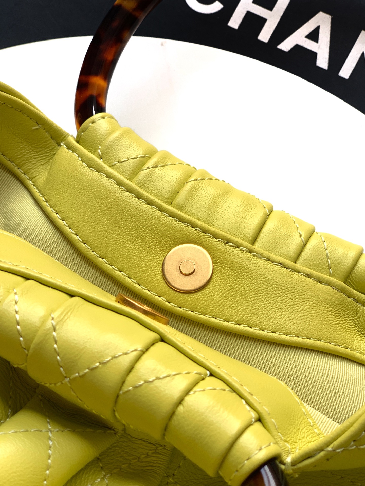 800 “Sheepskin” medium size 24cm “Chick Yellow” OHANEL️C cotton leather Yuanbao handbag brown. The small leather bag with a tortoiseshell handle is retro and elegant~ It goes well with a coat in this autumn and winter🤩🤩🤩(️It looks so elegant when carried in the hand. There is also a double C tortoiseshell logo in the middle of the bag, which makes the whole bag look lively. Haha. Medium size: 4 Xcm.