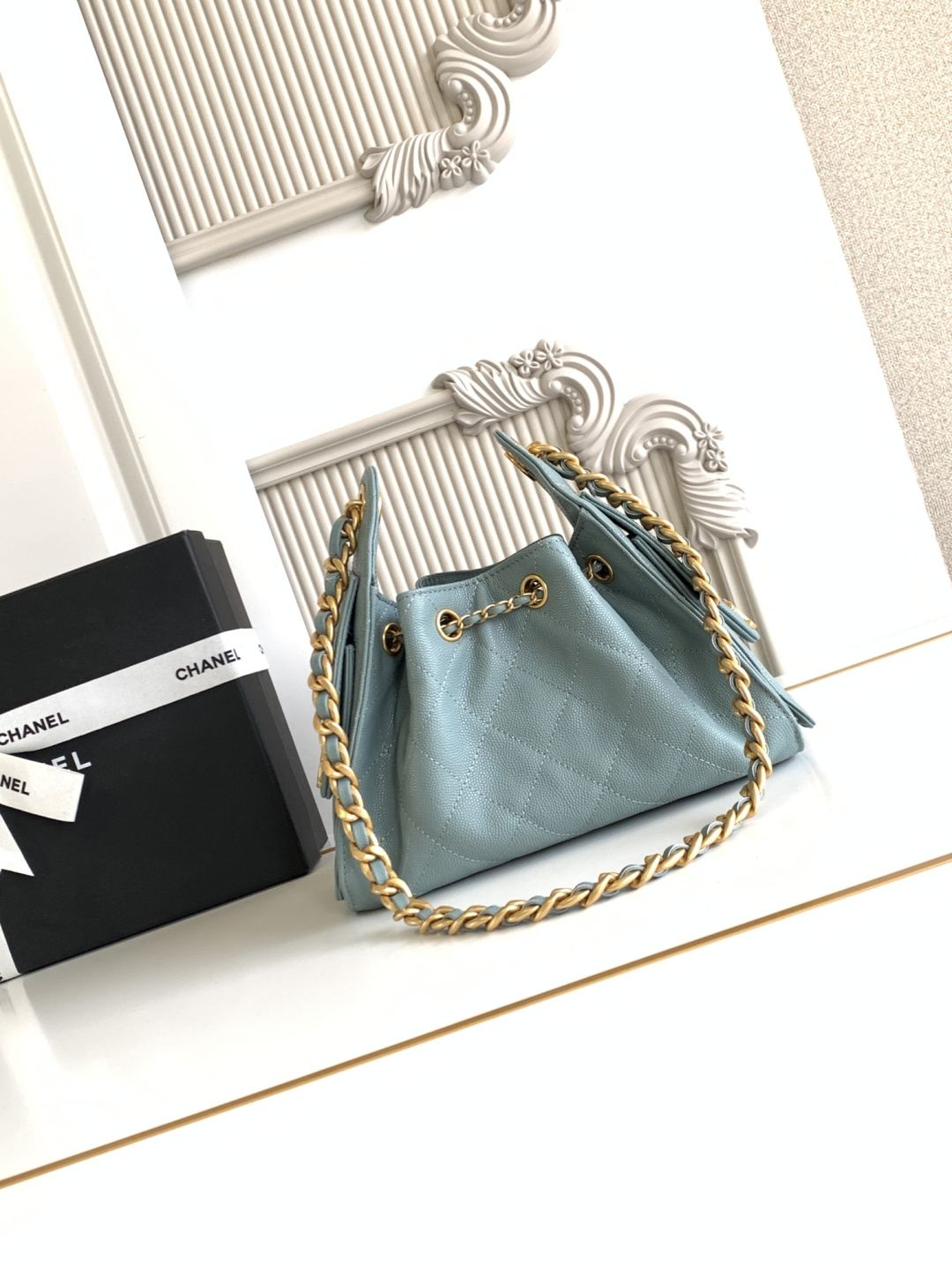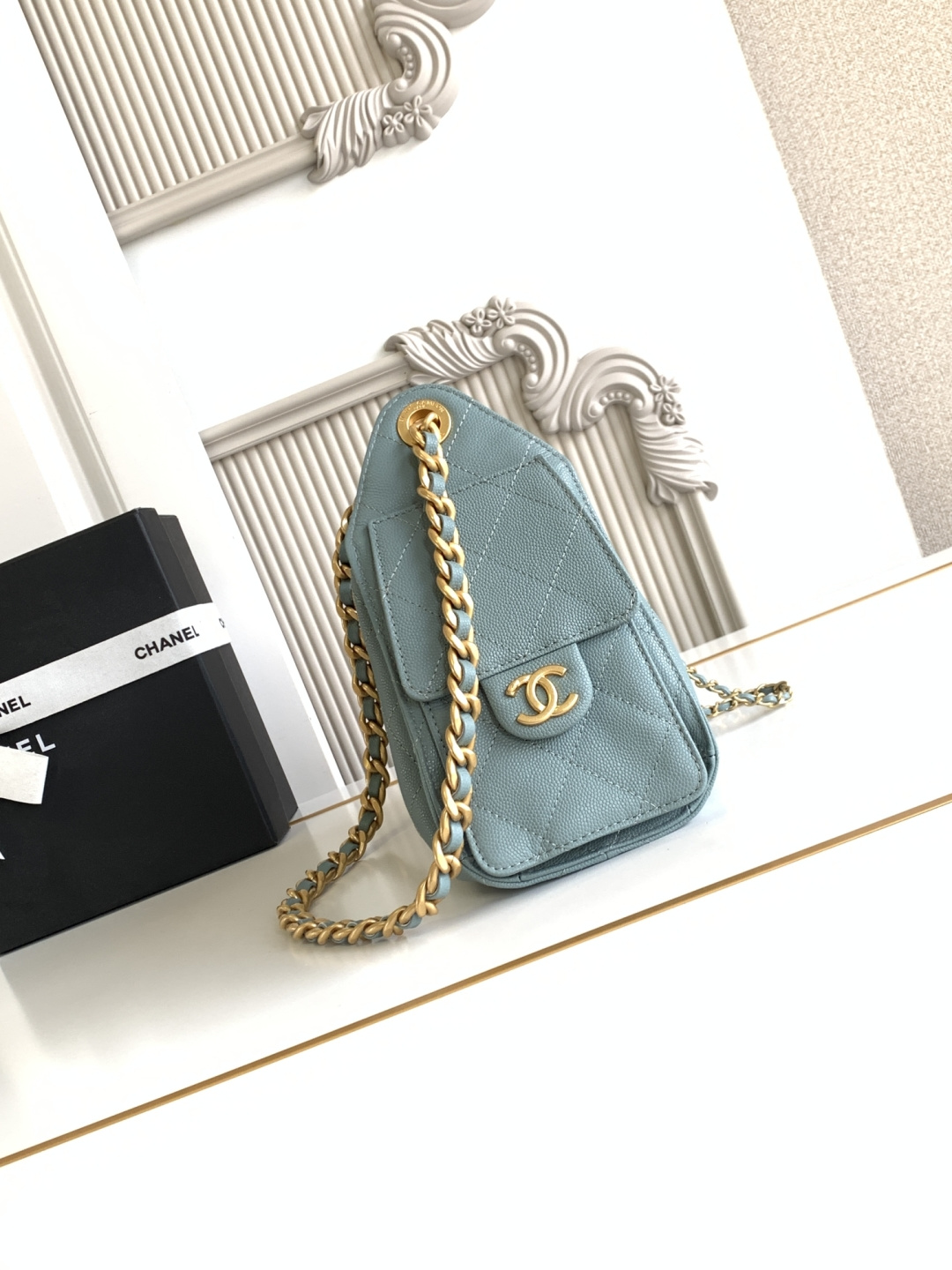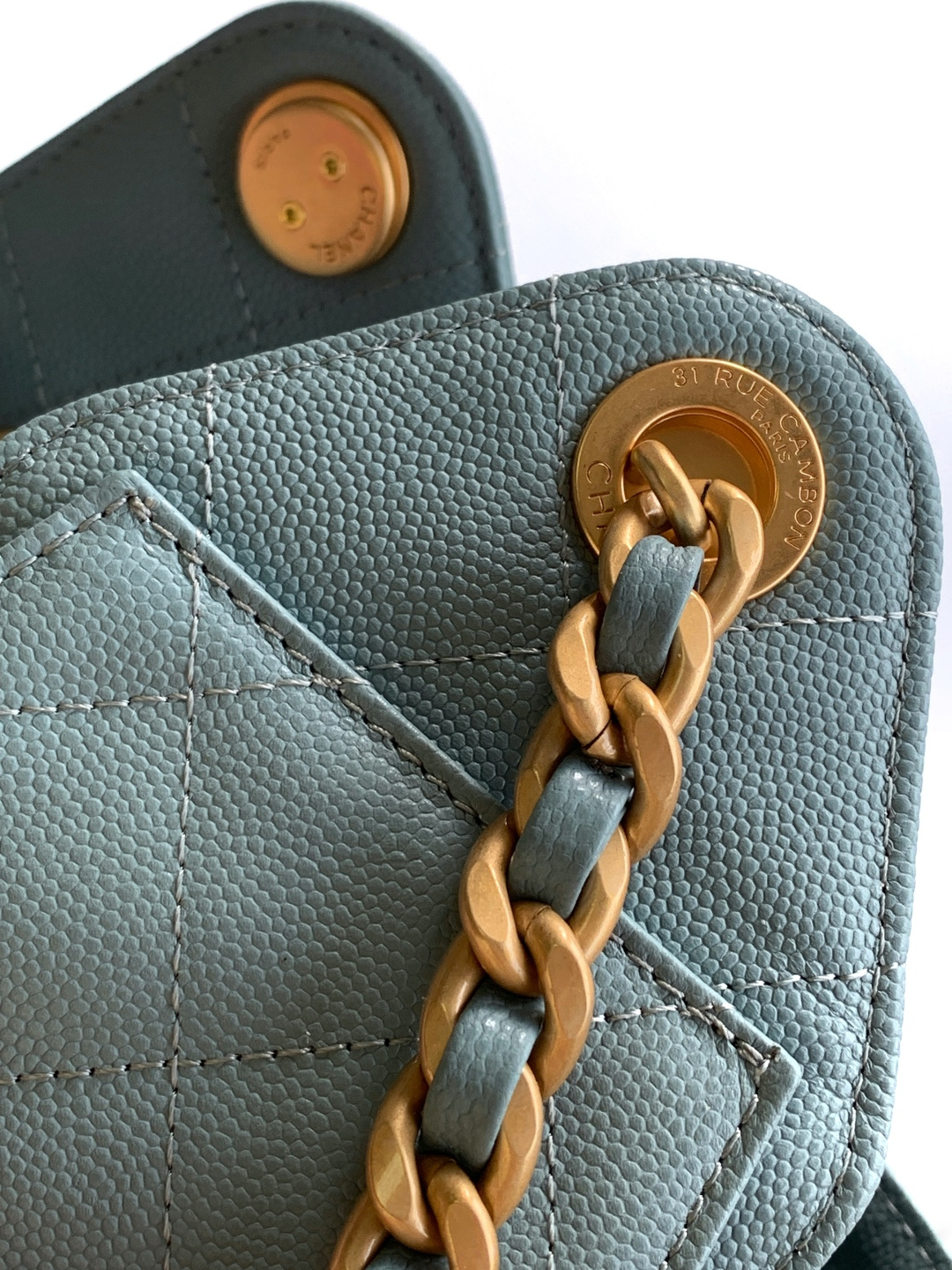 850 26C series blue suede CF bag, classic diamond pattern + light gold hardware, retro and high-end! The suede is