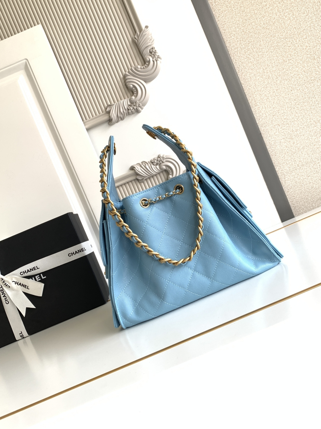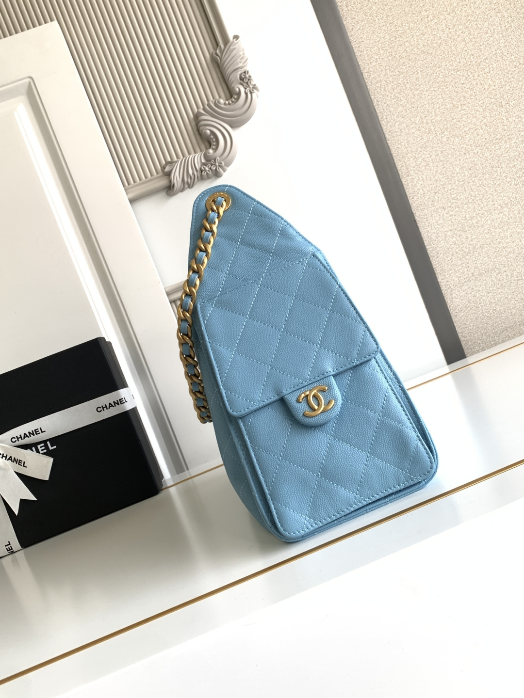 820 26C series blue suede CF bag, classic diamond pattern + light gold hardware, retro and high-end! The suede is