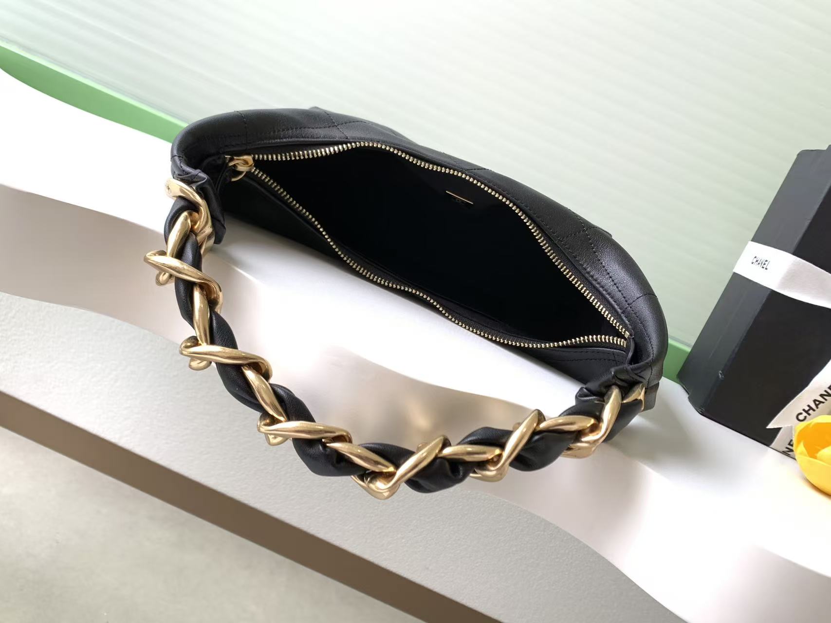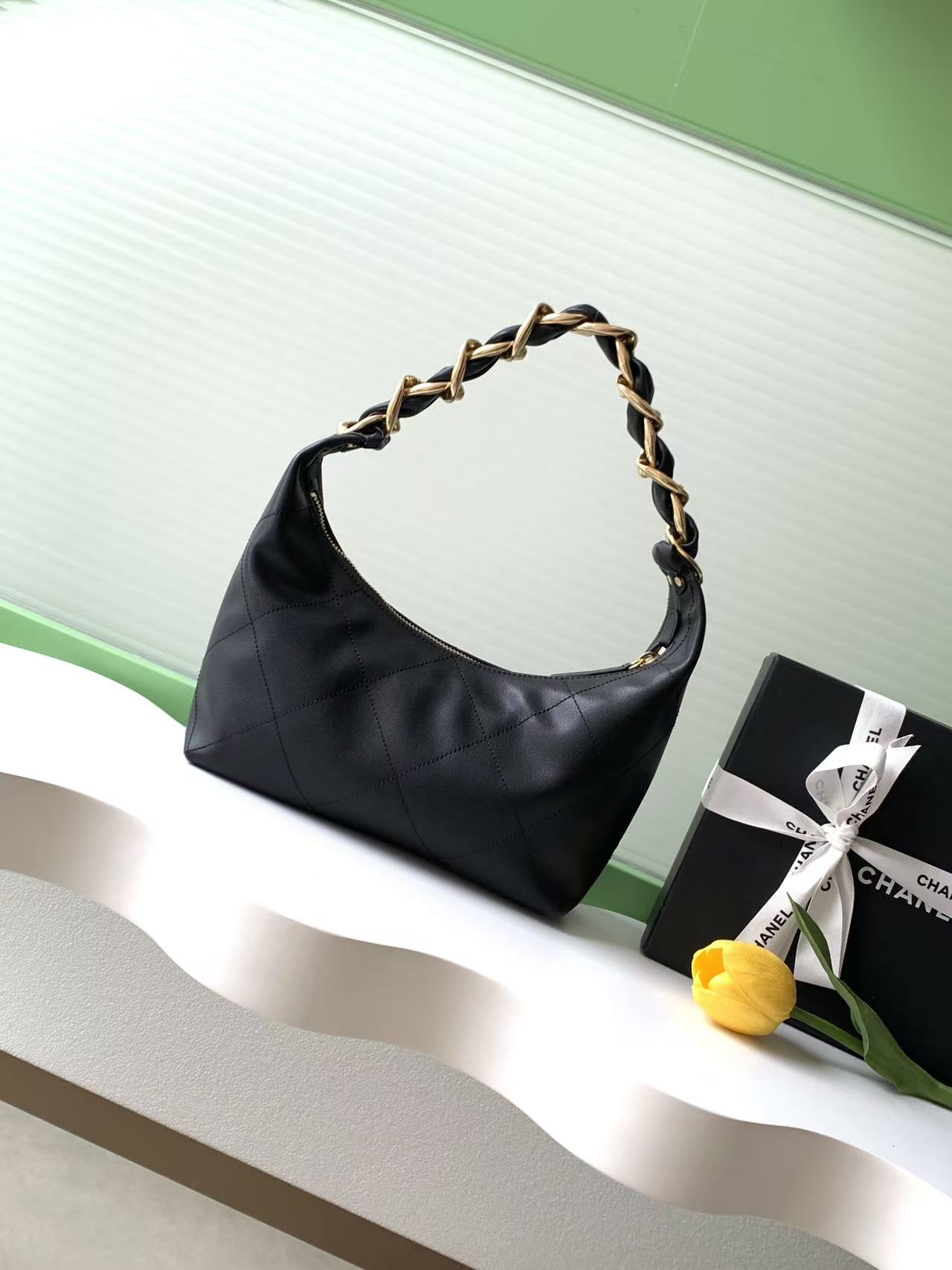 850 CHANEL Chanel 25k small size hippie hobo details are enlarged in high definition and are on sale. It is full of aura, a model that can be worn by both handsome men and beautiful women. Fried chicken is released [Deyi R][Deyi R] The shiny calfskin is delicate and soft, with a high-end feel. Although it is a big bag, the exquisiteness is perfect because of the delicate leather. The hobo bag shape is lazy, but the chain has a cool style. AS57 size 24-28-8