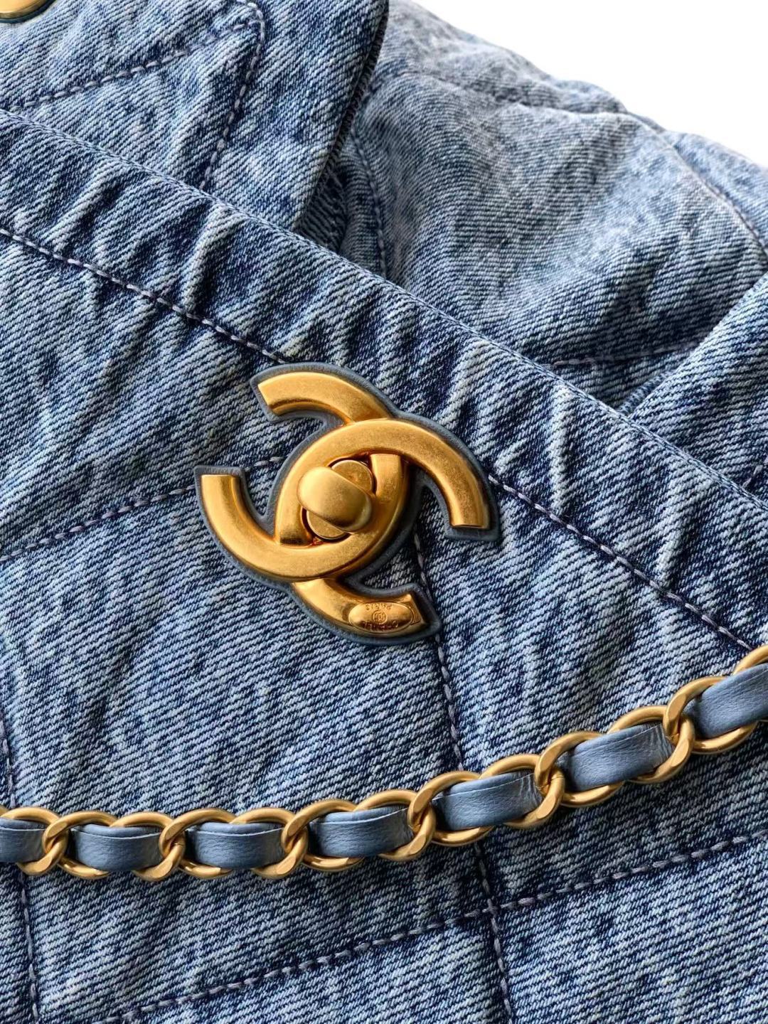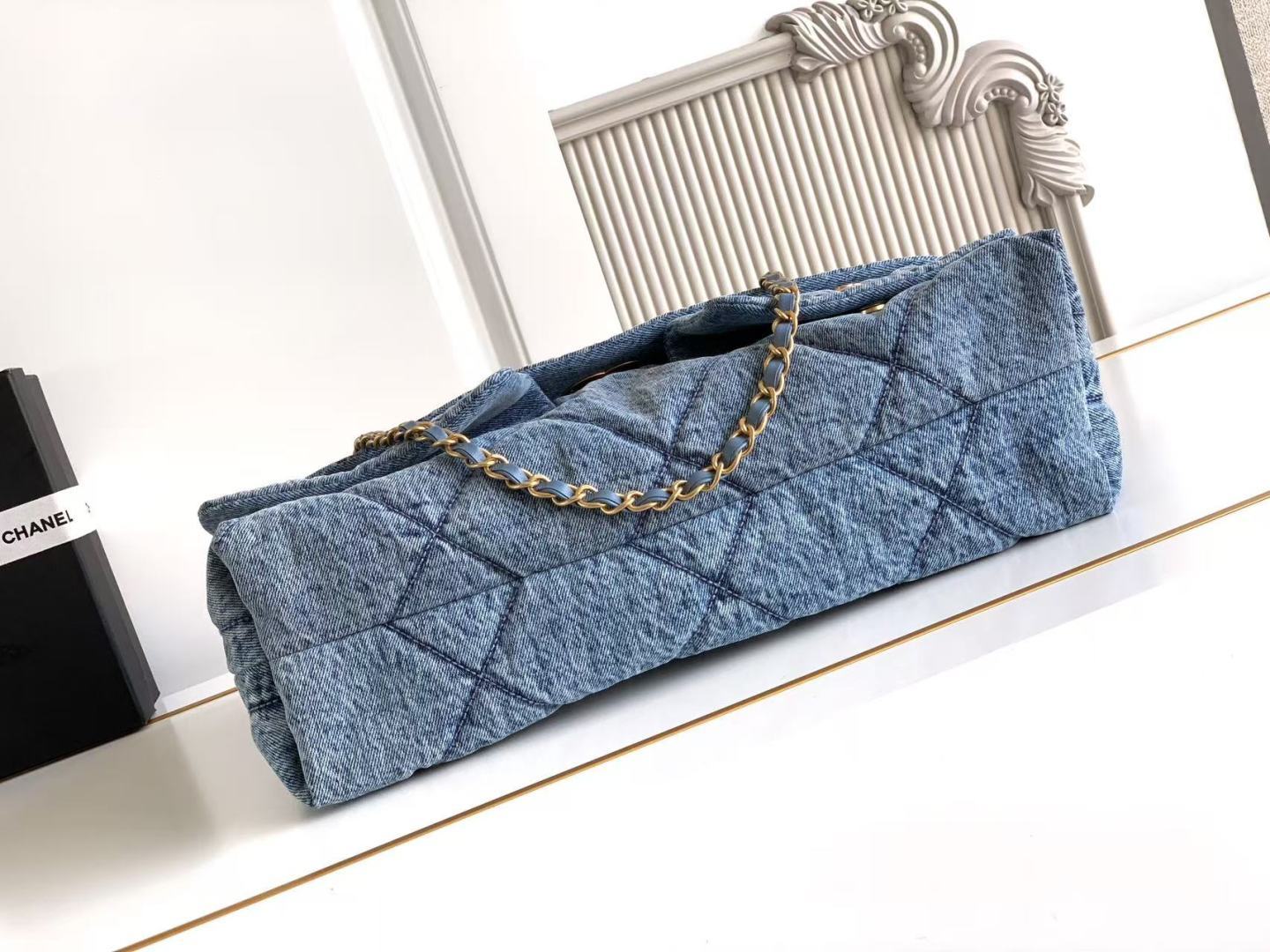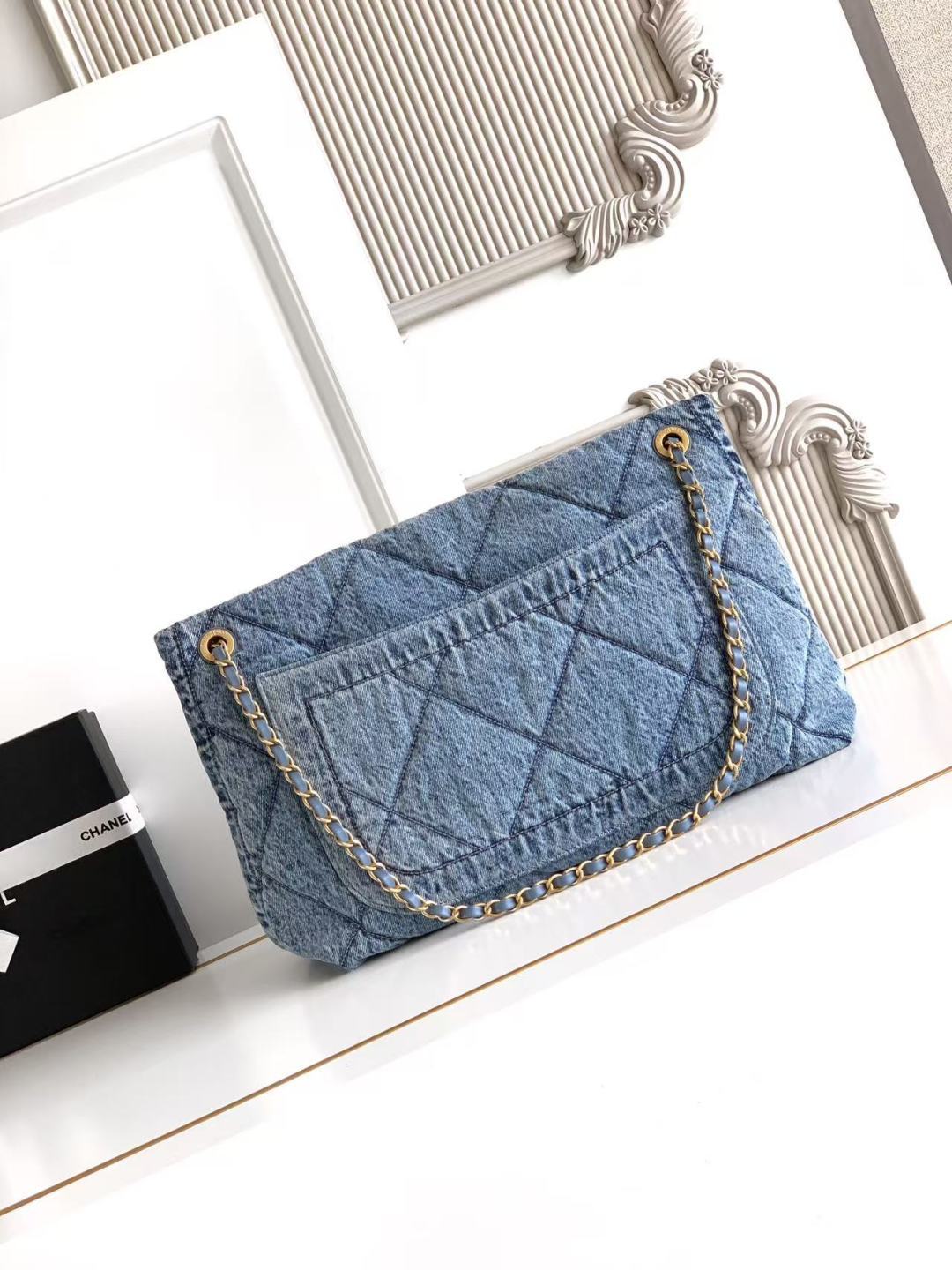 850 Chanel25K autumn and winter limited edition shopping bag, full of high-end sense, AS5727 is really exciting. Denim with gold metal, double pockets, chain retro pendant is more fashionable. It immediately makes the classic rhombus retro and elegant. The golden double C is more noble under the large flip cover, which has a classic taste and a bit of freshness. The leather is soft and smooth, noble and elegant, very practical, has a large capacity, and the upper body looks great. Size: 26.5×45×9.5cm