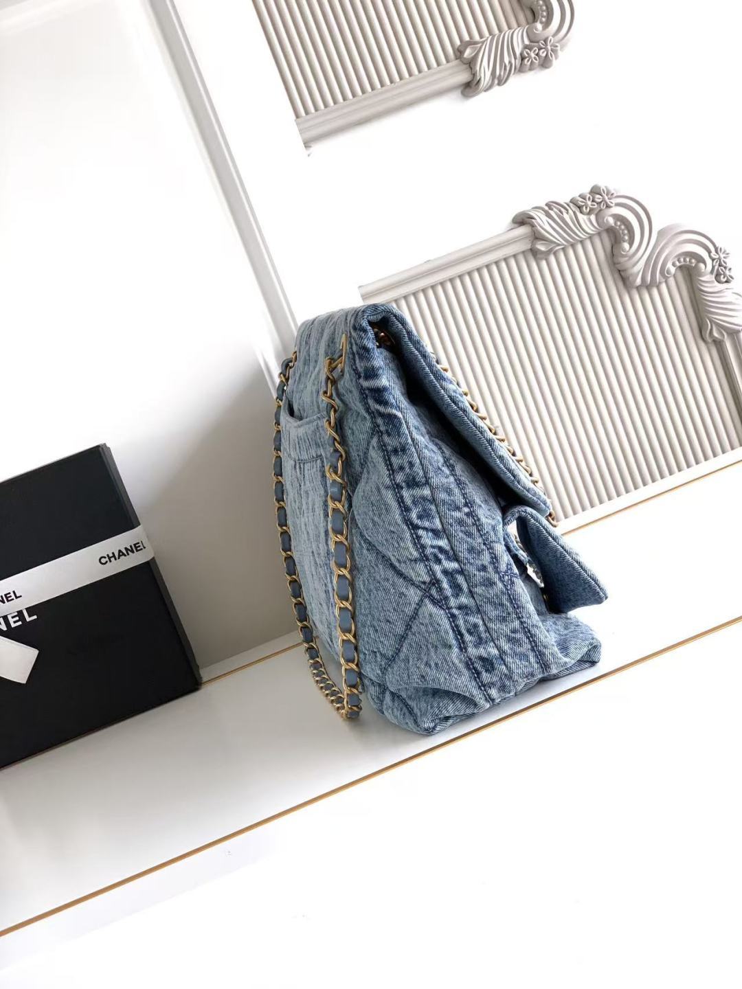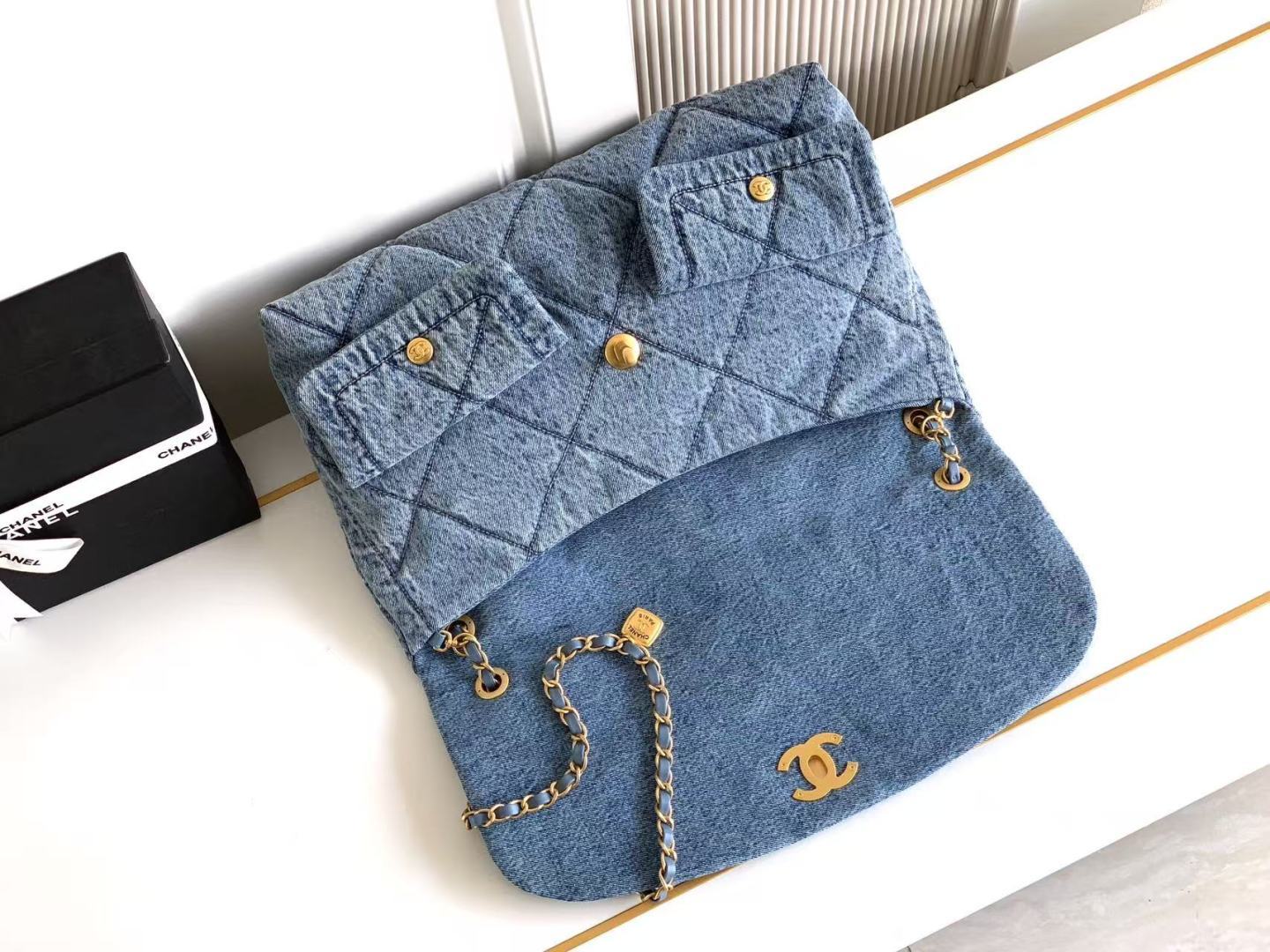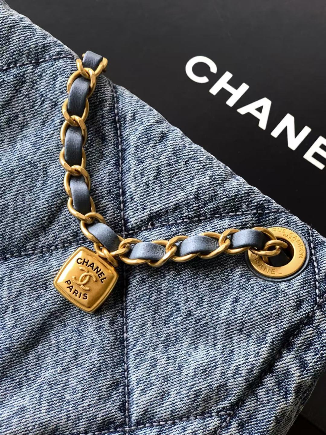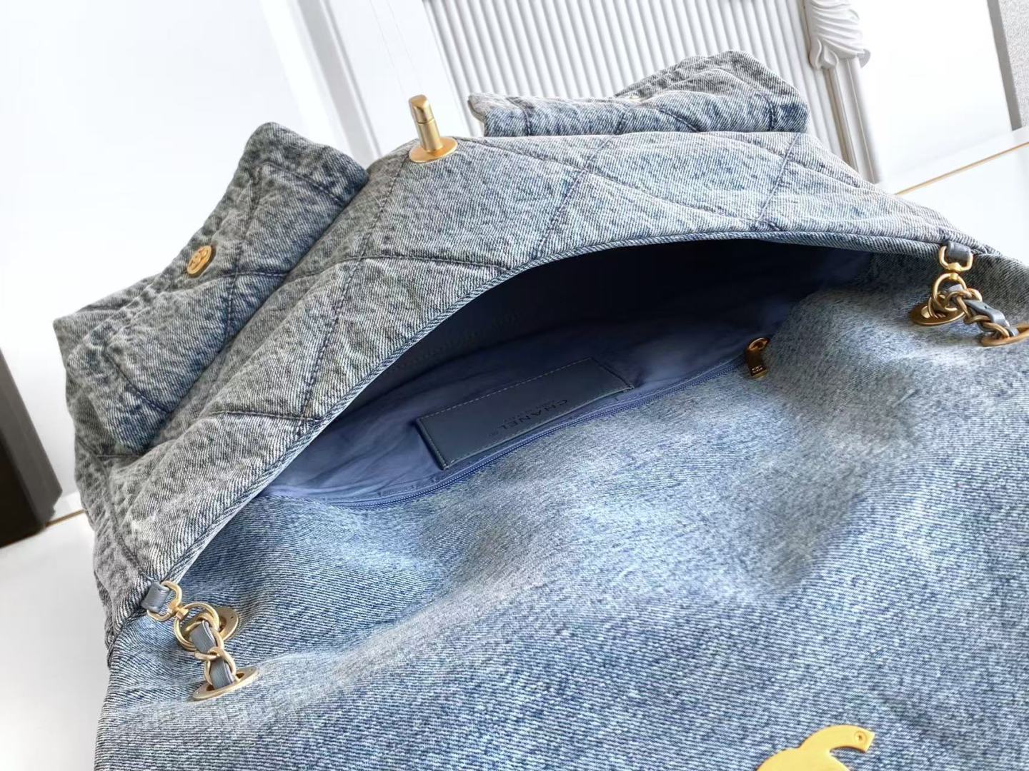850 Chanel25K autumn and winter limited edition shopping bag, full of high-end sense, AS5727 is really exciting. Denim with gold metal, double pockets, chain retro pendant is more fashionable. It immediately makes the classic rhombus retro and elegant. The golden double C is more noble under the large flip cover, which has a classic taste and a bit of freshness. The leather is soft and smooth, noble and elegant, very practical, has a large capacity, and the upper body looks great. Size: 26.5×45×9.5cm