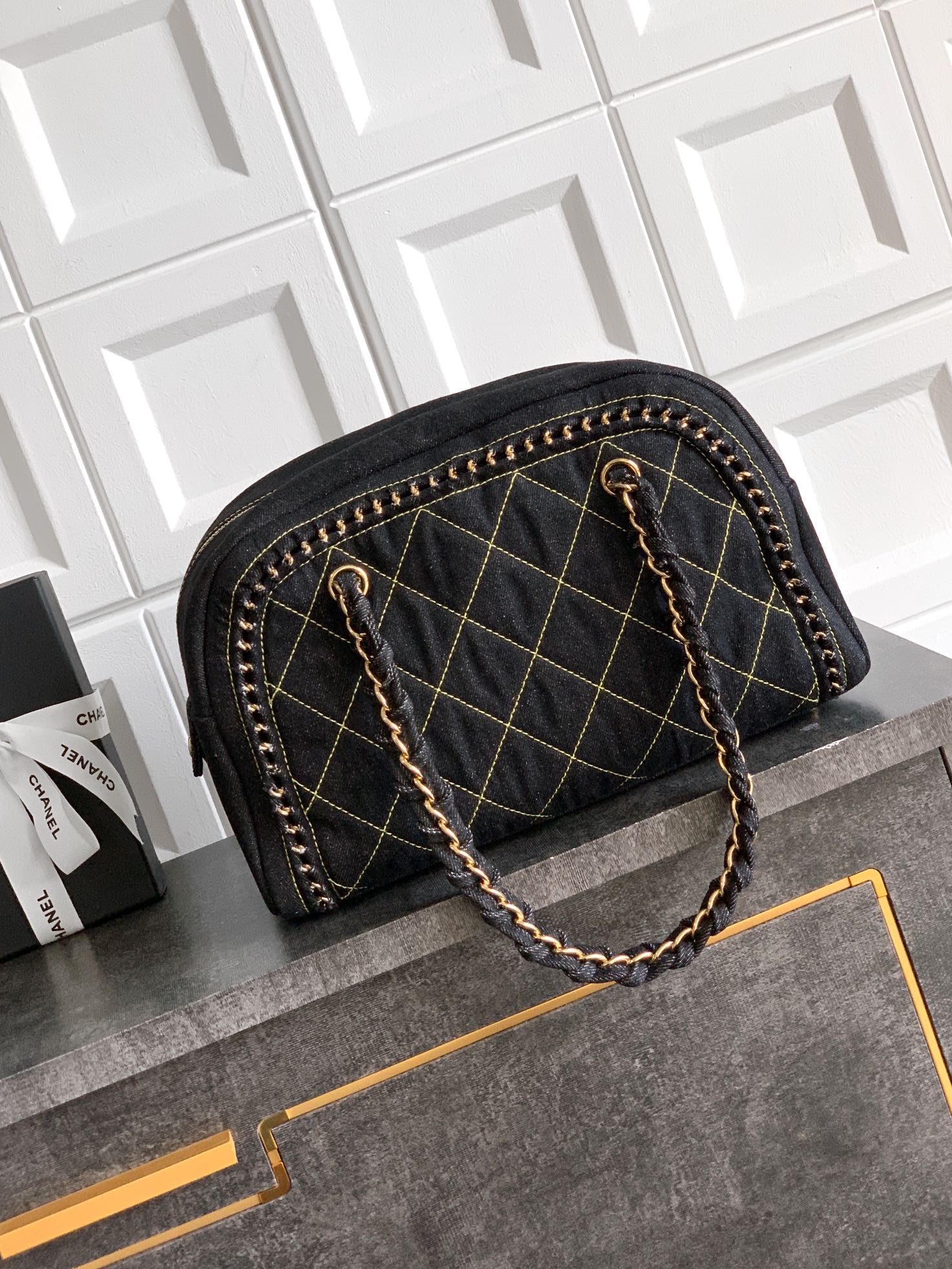 Bag Chanel 5 “Golden Buckle” black OHANEL denim denim bag! Meet the classic, bag collar trend: Boston style
