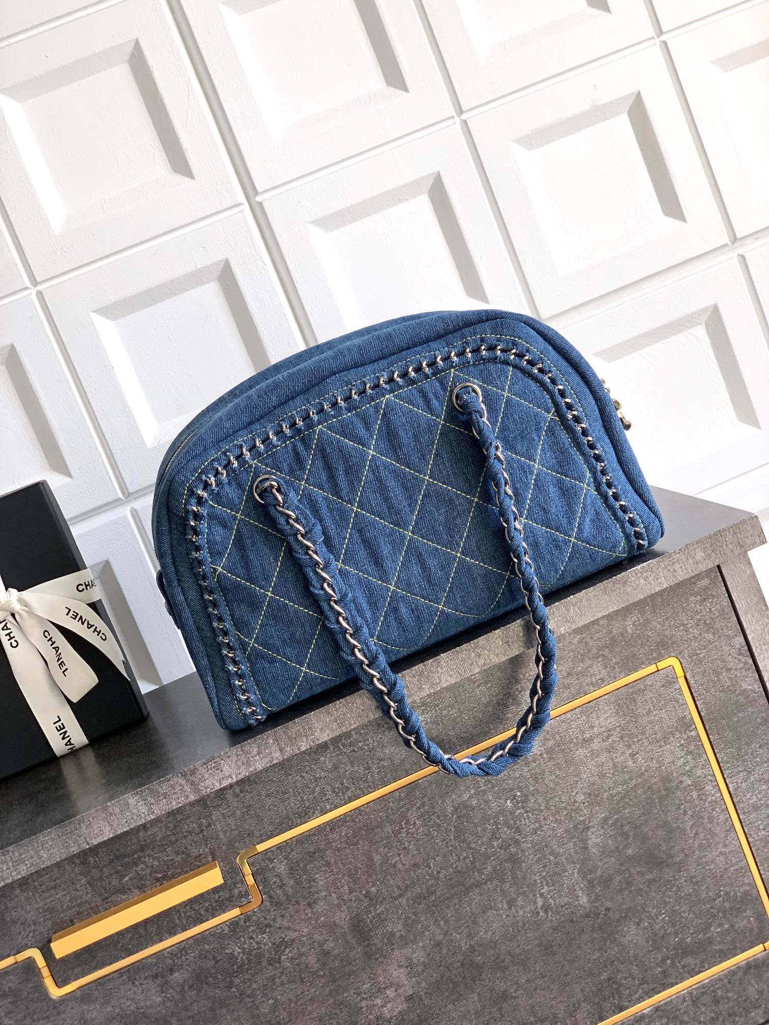 850 “Silver Buckle” OHANEL denim denim bag! Meet the classic, bag collar trend: the Boston bowling bag has a clever cylindrical shape, 🤩🤩🤩 can hold all the elegant fantasies! This Boston bowling bag is known for its unique cylindrical design and impeccable craftsmanship. The perfect blend of retro and contemporary! The retro shape of the bowling bag cleverly combines it with the brand’s classic elements. The rounded bag body has smooth lines, delicate and charming texture, and has a high-end retro atmosphere. This material is not only comfortable to the touch, but also displays a unique aging charm over time. Recognizability and added visual comfort. Craftsmanship: details witness excellence · Metal elements: ️It is both gorgeous and low-key luxury. The exquisite diamond pattern on the front and sides is perfectly spliced, demonstrating the brand’s ingenuity. Easy and convenient, there is also a zipper bag inside to protect important items: elegant and easy to change, versatile: the perfect companion from casual to formal. This bowling bag is very suitable for trendy girl style, whether it is casual daily wear or semi-formal occasions, it can add the finishing touch to the overall look. In early autumn, paired with a windbreaker and short boots, it can add a touch of retro elegance to your outfit; in spring and summer, paired with a dress, it can show a relaxed and lively side! Denim denim size .5X cm