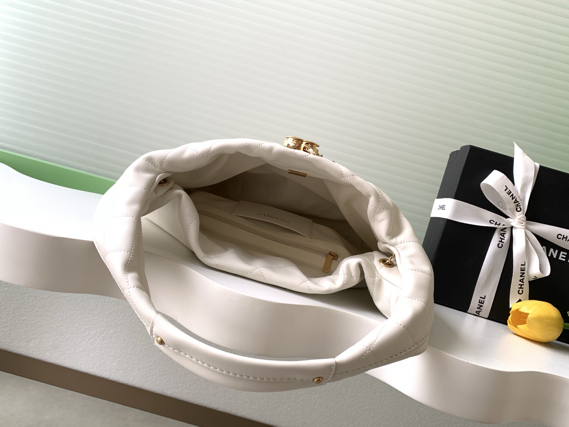 The 860 Chanel 26C Hobo handbag is a new product in the 2026 early spring vacation series. It is made of soft calfskin with a delicate feel and classic diamond stitching for a super texture. Drawstring cuff + double C metal buckle, perfect details! The shoulder strap is a metal leather chain, which can be worn under the armpit or cross-body. It is lazy, casual and practical. The capacity is moderate and can be easily used for commuting, shopping, and dating. It can be worn casually or elegantly. It is a fashionable item with both function and design! Style number AS5967 size 45–