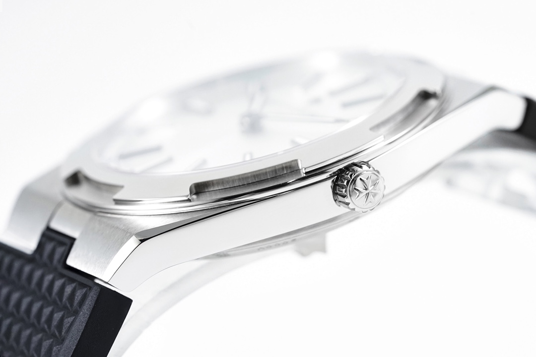 The 8F 20200V_G-B mm case is equipped with a self-winding mechanical movement – Caliber 90 QP_1 ultra-thin movement. The stainless steel material has a smooth and natural curved appearance, with both craftsmanship precision and aesthetic texture. The arc-shaped bezel and case with polished and satin finishes are more ornamental. The simple and elegant sunburst brushed dial is clean and neat. It also has a sense of simplicity. It is worth mentioning that this steel band is designed with a stretchable adjustment on the tail grain, which better serves the needs of the majority of watch friends who want to add thick steel grain to their wrists.
