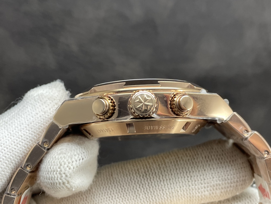 The newly upgraded 8F Vacheron Constantin Overseas Series 5500V V2 version’s one-click quick-release rubber straps and belts have finally been successfully released despite repeated failures regardless of cost. Its perfection is interchangeable with the original. 2. The highly aesthetic case has been treated with upgraded polishing and other processes. The stainless steel material curve has a smooth and natural appearance, with both process precision and aesthetic texture. The arc-shaped bezel and case are polished and satin-finished, making it more ornamental. 3. The intriguing sunburst brushed dial highlights the layered feel of the watch. Multiple processes such as sandblasting, polishing and texturing highlight the layered look of the watch. The luminous hands complement the gold frame surrounding the bezel.