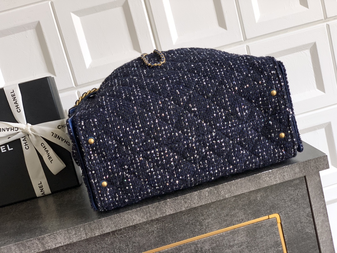 Home BAG Women's Bags Chanel Bag Chanel Navy blue “large size” OHANEL a high-end handicraft workshop ~ tweed bag too