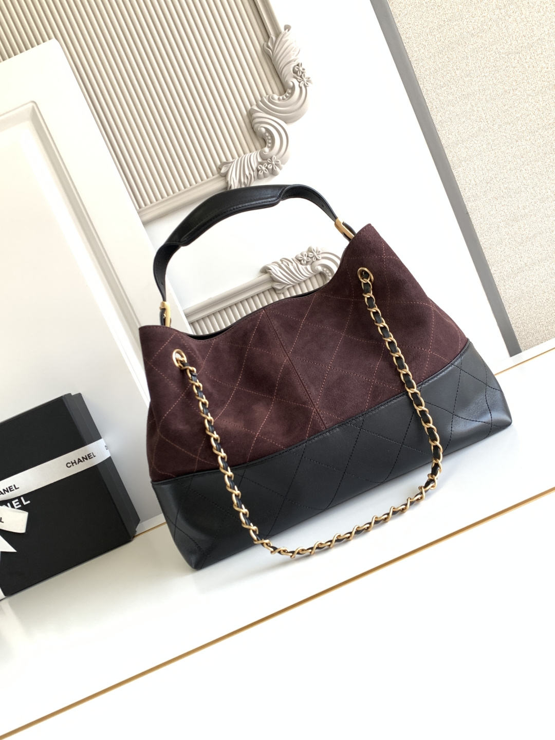 Bag Chanel AS5634 CHEANL Chanel classic color-blocking tote bag, suede and leather collision