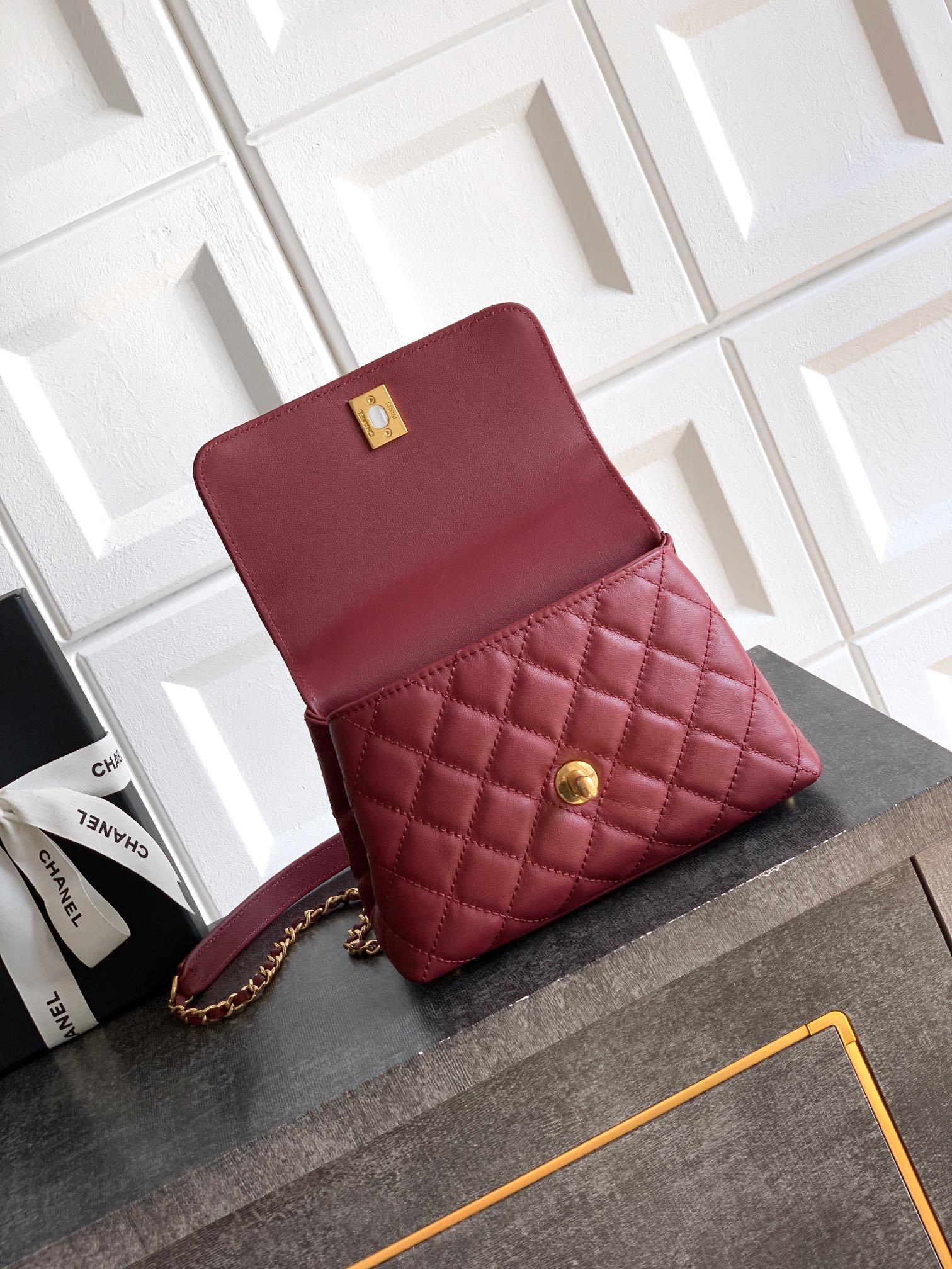 900 “Burgundy” The latest small size 5K gold diamond hollow handle on the Internet! Classic and fashionable series, hot style is coming🤩🤩🤩🤩cocohandle classic! Made of fetal cowhide! The design of the pure copper metal handle with diamonds is sparkling and super noble. I can’t put it down with this retro design style. It’s so beautiful~ It’s cute and mini. The limited edition is super rare. The design is really unique! The whole bag looks so elegant when held in your hand! It feels delicate, soft and comfortable, and is very durable. It is a very affectionate and elegant bag ~ size “cm