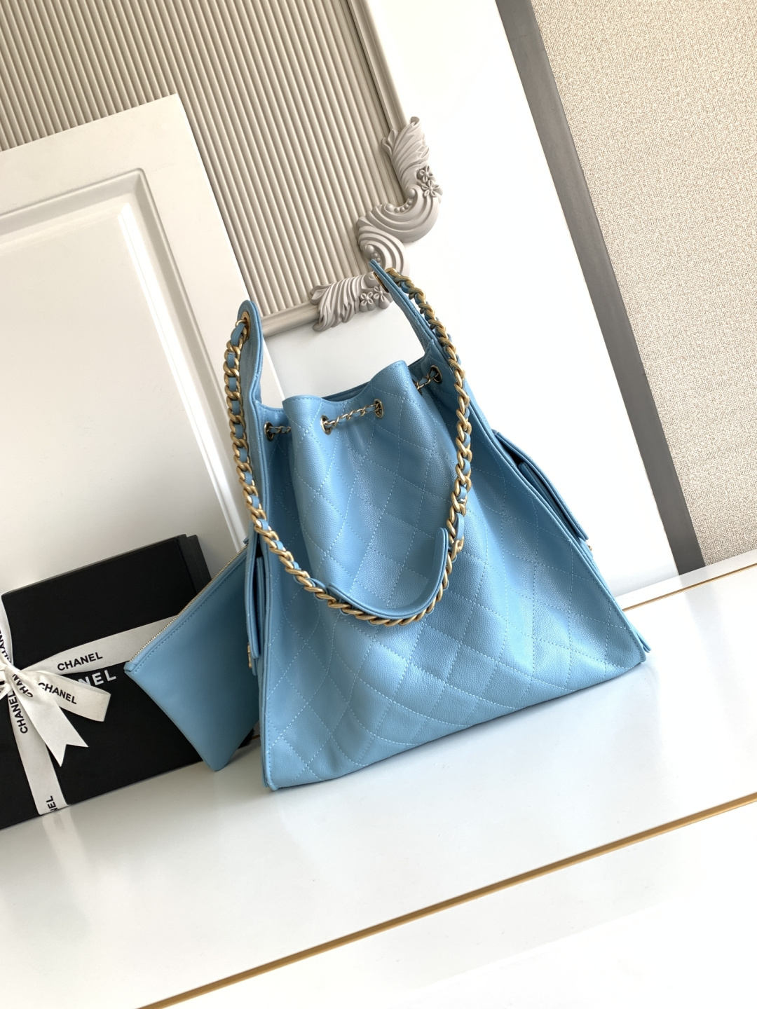 780 26C series blue suede CF bag, classic diamond pattern + light gold hardware, retro and high-end! The suede is