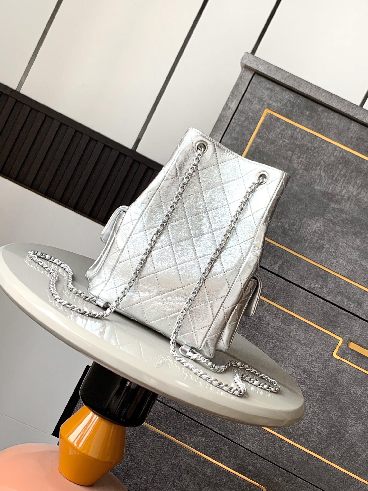950 crystal silver OHANEL duma bucket backpack! 25C’s latest model is back in the world, little melon~Guaguagua~Who bought it? Polished lambskin + gold metal hardware, slim shape and two slip pockets make it more handsome and attractive. bag~ I have to say it’s cute and I still like it🤩~ The real thing is great~ The capacity is very touching~ I’m going to give it a try~_25 early spring vacation series black gold rhombus sheepskin, durable and eye-catching, the shoulder straps are still leather chain style ️ portable ️ single room ️ double shoulder 🫶! It can hold a lot of items and is versatile and retro. Don’t you love this beautiful and practical backpack? A must buy~ Size: 3