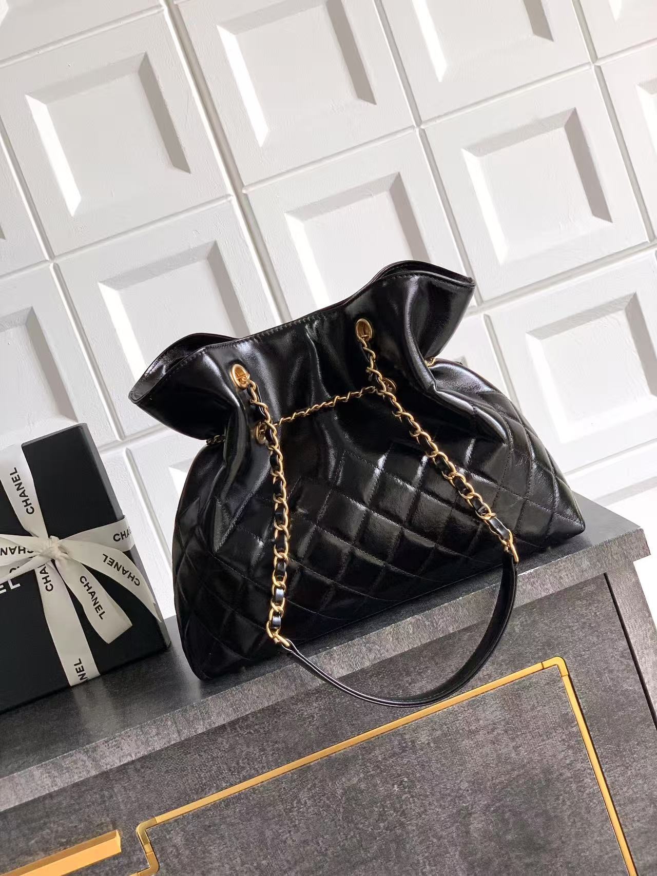 980 OHANEL black tote bag is out in small quantity ~ Wang Zha’s same large tote bag is here! Black and gold color, classic large diamond pattern and thick chain. It has a retro feel. The drawstring design is super considerate and can be flexibly adjusted to expand the space ~ very casual and full of relaxation! The material is waxed leather. Whether you are out on the street, traveling or using it as a mommy bag, it can be your best partner! Cool Tote Bag! When paired together, it will look like the perfect outfit for bloggers🤣Size: length cm, height 26cm
