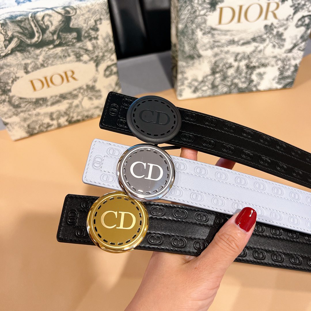 ^_^The latest model is coming [Brand] Dior. This mm double-sided belt combines elegance and modern style. Black smooth calfskin style with tonal embossed CD icon on one side. Compatible with various mm belt buckles. Embossed CD Icon Smooth cow leather Made in Italy This belt does not come with a matching belt buckle, which must be purchased separately Sold separately, can be paired with a belt buckle of corresponding size for a sophisticated look D5