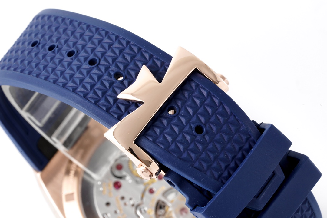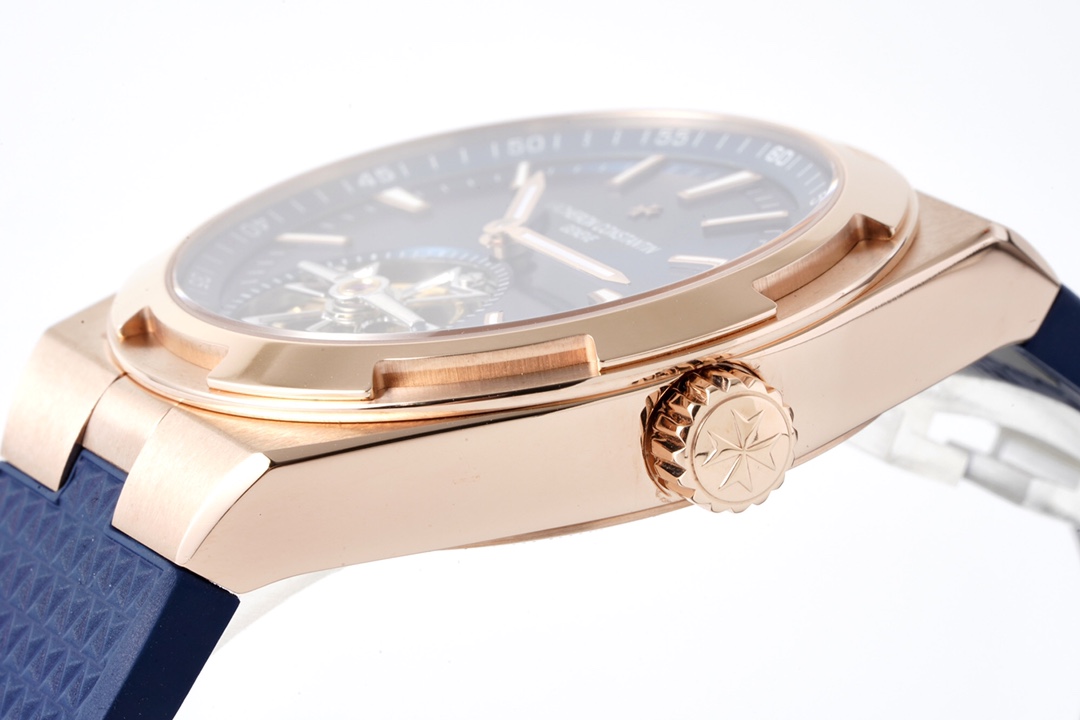 A small amount of arrival [Starting from the core, thinner and better] Produced by 8F, the three major highlights of the Vacheron Constantin Overseas Tourbillon V2 version are the case diameter of 42.5 mm and the thickness of 4 mm, which is much thinner than the V1 version. The case has been upgraded and polished and other processes. The curve of the stainless steel material has a smooth and natural appearance, with both process precision and aesthetic texture. The arc-shaped bezel and case are polished and satin-finished, making it more ornamental. 3. Equipped with a one-button quick-release quick-change bracelet. Each one is equipped with a steel strap, rubber strap, or belt, which can show different styles on different occasions.