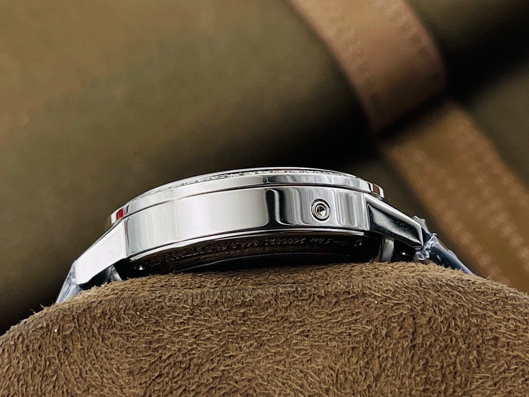 【AN Factory202 watch! Wonderful details: [Movement] It is made of 90 mm diameter and has a thickness of 8.8 mm! The appearance is the same as the original stainless steel material. The bezel is inlaid with closely arranged brilliant-cut diamonds. [Dial] Guilloche dial, the inner dial is harmoniously and symmetrically decorated with smaller diamonds. [Mirror] The material is sapphire crystal glass with high transparency and clarity. [Strap] It is made of high-quality Italian first-layer cowhide, with a classic Jaeger-LeCoultre original folding integrated buckle. AN Factory’s ingenious masterpiece, all goddesses are welcome to taste it!