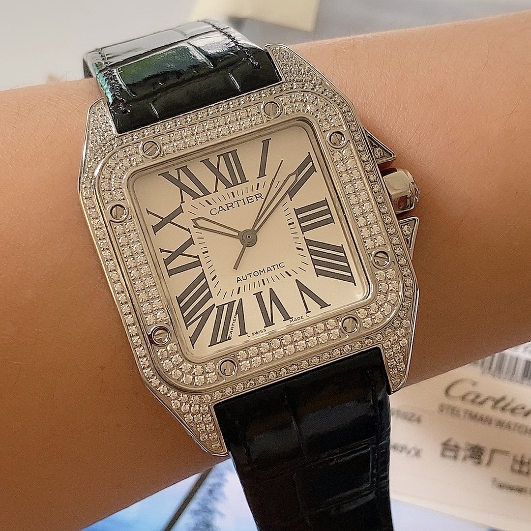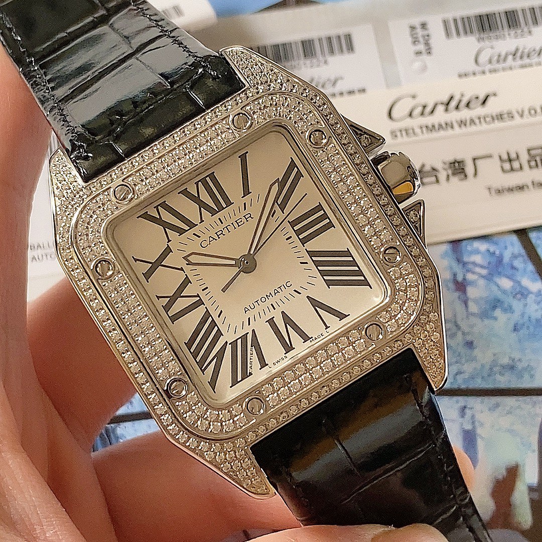 2024 Santos Series 0th Anniversary Men’s Large Size 42mm Square Curved Sapphire Glass and Text The Strongest Workmanship on the Market Santos Top Replica Supports Authentic Comparison Large Size Equipped with Original Swiss 2824 Movement Cowhide Strap Original Folding Buckle