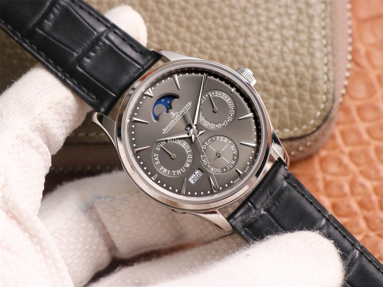 Another historical moment in the world of replicas, the “perpetual calendar”, one of the three complex functions of famous watches, was successfully developed! V9 Jaeger-LeCoultre Master Perpetual Calendar automatic mechanical watch (official model: white surface 842J, black surface 8470, gold surface 2520, gray surface can be returned to the factory for free in 24 years to replace the year module), like the original one, it can be adjusted through the hidden button on the case, and is better than the original reversible adjustment (the original year is irreversible, and you will need to repair it at your own expense after adjustment); 2. Sun, Moon and Star (Annual Calendar) – Date (20qfwcad