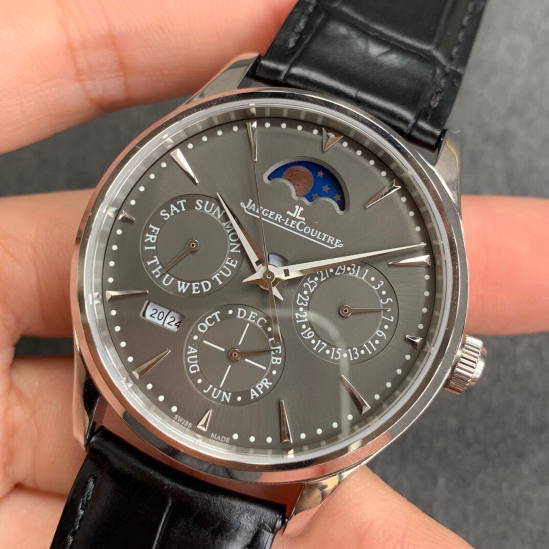 Another historical moment in the world of replicas, the “perpetual calendar”, one of the three complex functions of famous watches, was successfully developed! V9 Jaeger-LeCoultre Master Perpetual Calendar automatic mechanical watch (official model: white surface 842J, black surface 8470, gold surface 2520, gray surface can be returned to the factory for free in 24 years to replace the year module), like the original one, it can be adjusted through the hidden button on the case, and is better than the original reversible adjustment (the original year is irreversible, and you will need to repair it at your own expense after adjustment); 2. Sun, Moon and Star (Annual Calendar) – Date (20qfwcad