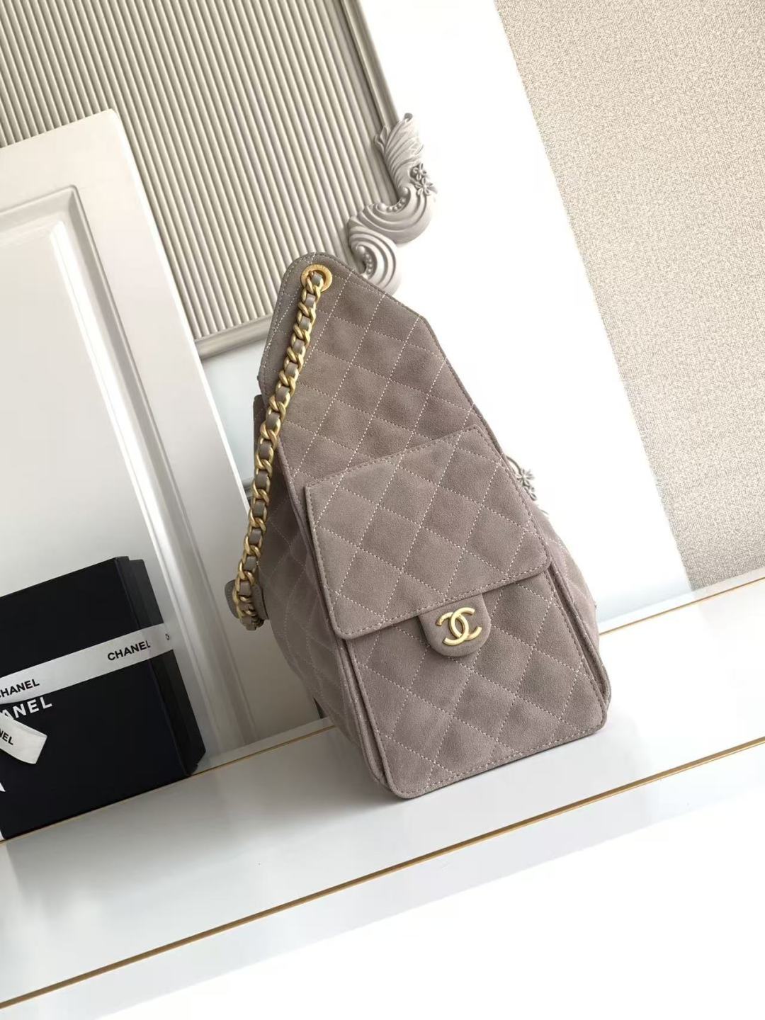 850 26C series blue suede CF bag, classic diamond pattern + light gold hardware, retro and high-end! The suede is