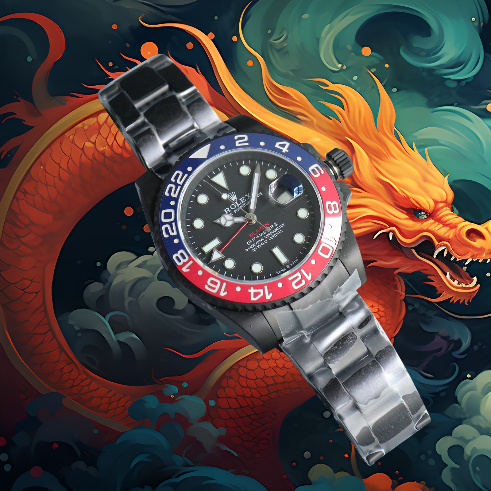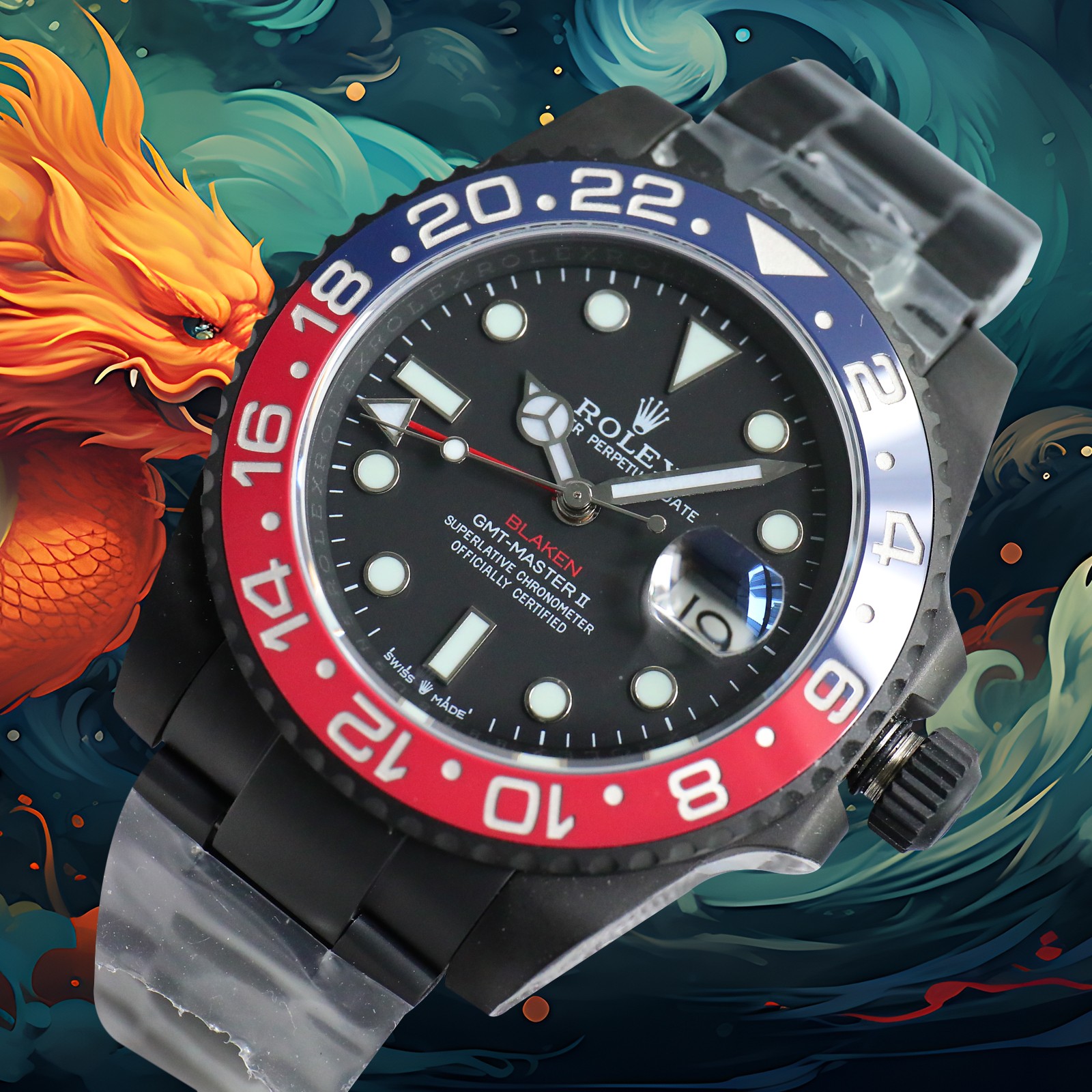 Auspicious Year of the Dragon, new BLACK products are on the market. The official customized version of LAOJIA BLACK GMT-Master REVENGE (Milgaeus Revenge Series) is on sale in limited edition. New DLC black plating process + anti-fingerprint coating. Integrated two-way ceramic rotating bezel. Clear discoloration transition at the edge of the bezel. Super 904L steel. Equipped with the latest customized Cal. integrated 3 movement. Same as the original version. The GMT needle is independent and monotonous. The hour hand adjusts the calendar. The hour hand can also be adjusted back to restore the full function of the original product. The strongest copy of the carbon black version of Milgauss’ Revenge.