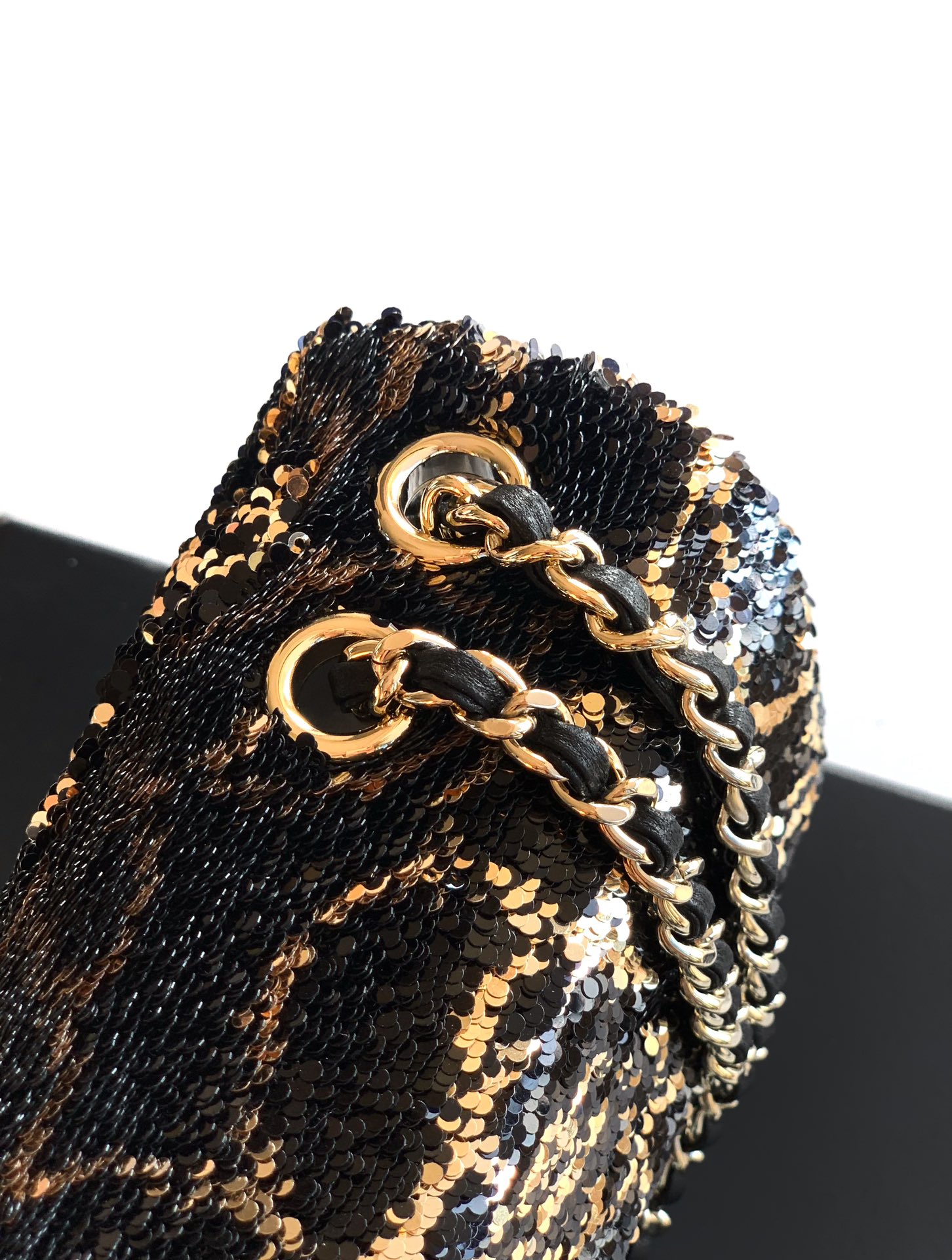 Home BAG Women's Bags Chanel Bag Chanel “Black Gold Camellia” OHANEL A dense sequins, shape CF super shiny beads