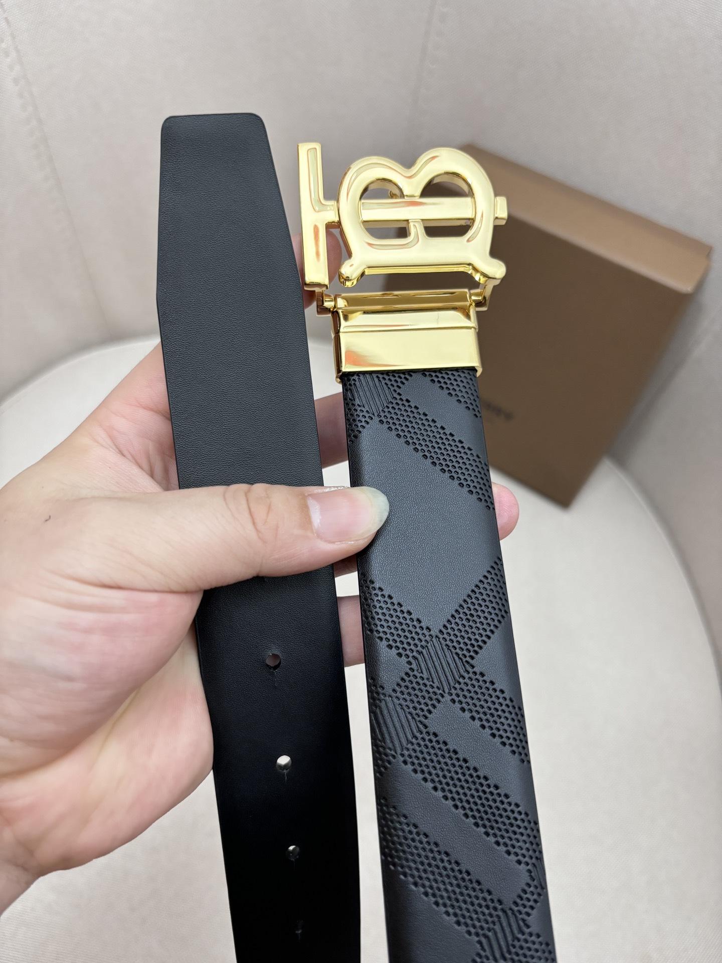 BURBERRY-Burberry! Men’s counter matching metal buckle, first-layer cowhide double-sided external belt, suitable for business, commuting and leisure occasions cm