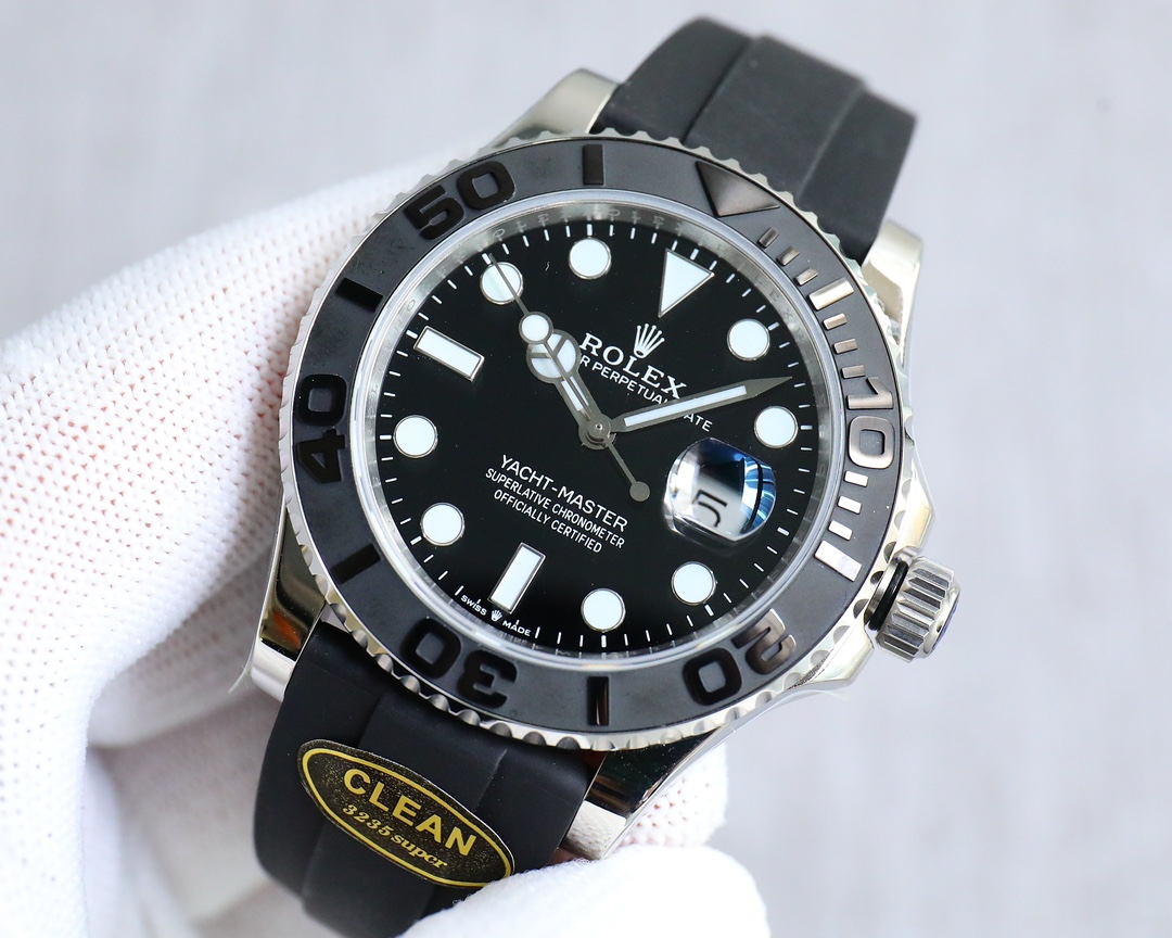 Factory C clean [People-friendly version 02 YACHT-MASTER 42mm new white yacht. Genuine mold opening, two-way rotating outer ring, no longer loose, the strength and feel are authentically adjusted; Asian wrist size rubber tape is wrapped according to genuine craftsmanship, durable and comfortable; the steel stamp on the case is the same as the original, not ordinary engraving; the latest level movement! True one, time adjustment, calendar adjustment, genuine synchronization, not 3 modifications, truly high quality and low price, the best luxury recommendation for gift giving, please look for the clean exclusive quality of C Factory