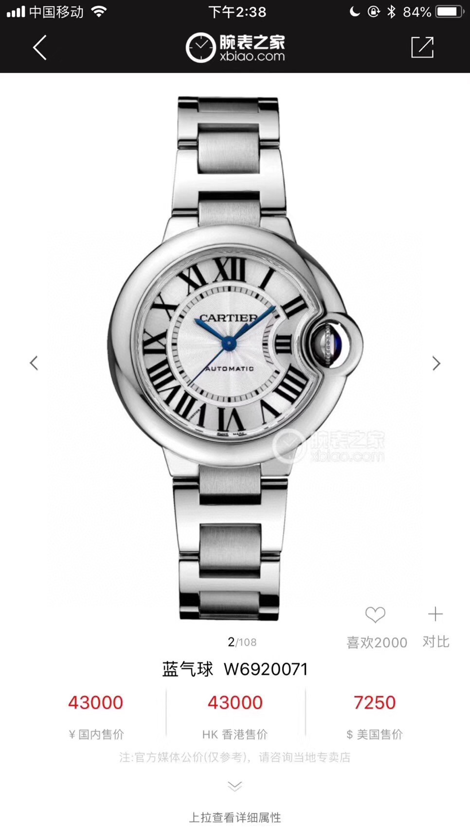 Carrying the eternal fashion endorsement. Cartier classic blue balloon series mechanical watch!