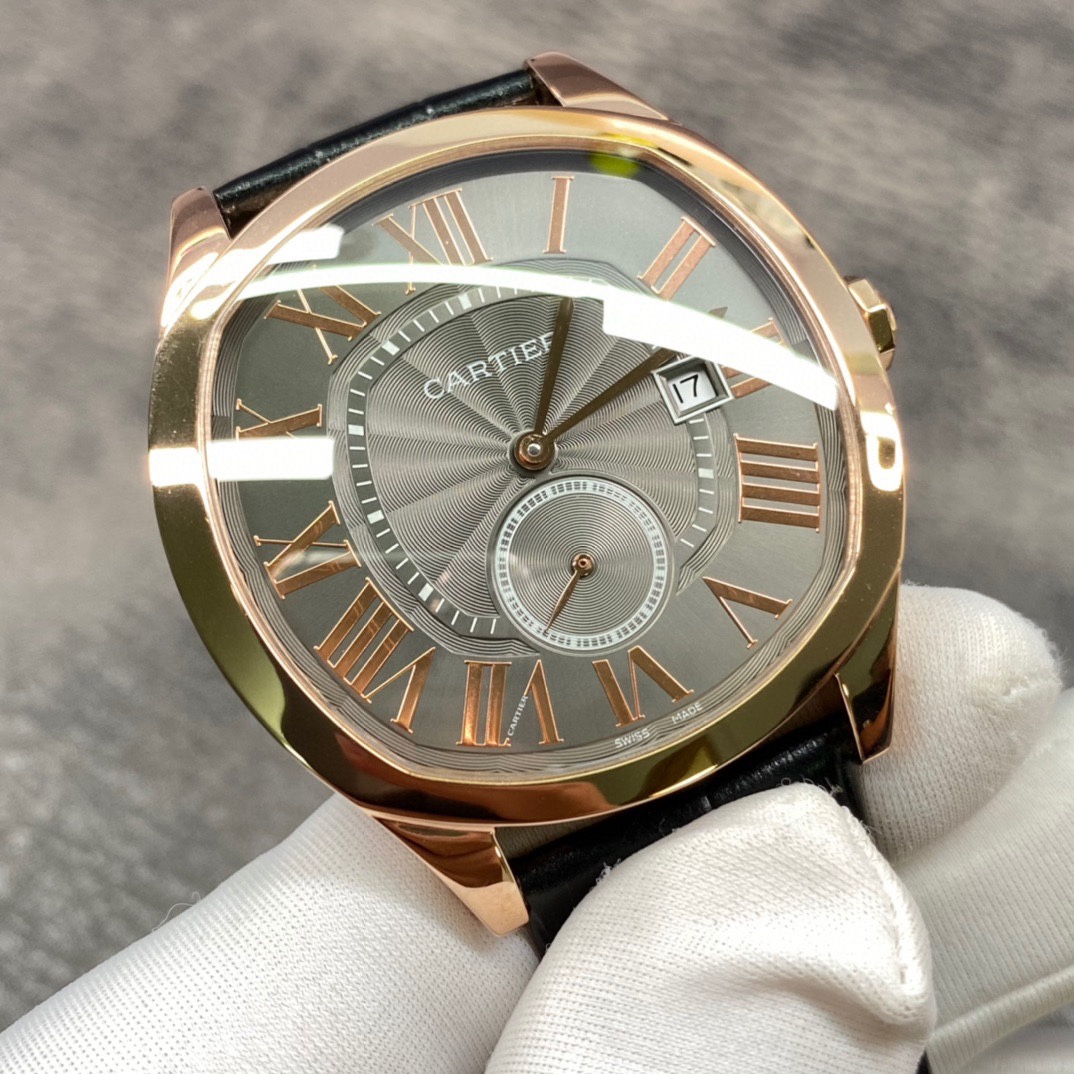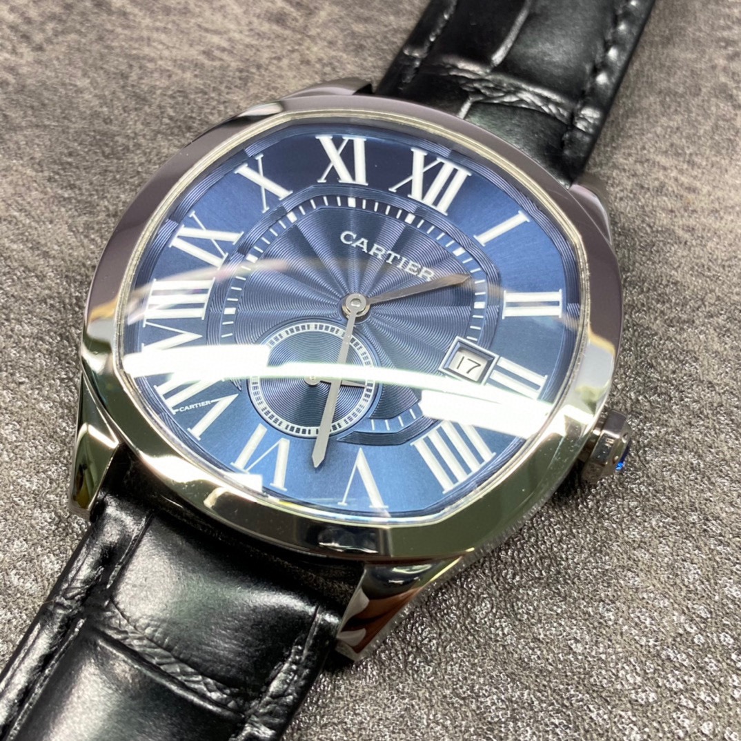 Cartier Drive de Cartier series watch. The elegant and solemn pillow-shaped design combined with neat and generous line layout shows the masculine and unyielding charm of men. [Case] Watch data 40mmX4mm (the thinnest on the market). The unique pillow-shaped case is top-notch in workmanship, and the clear and full arc lines are reproduced in place. Keep improving and restore the experience closest to the original version for our watch friends.
