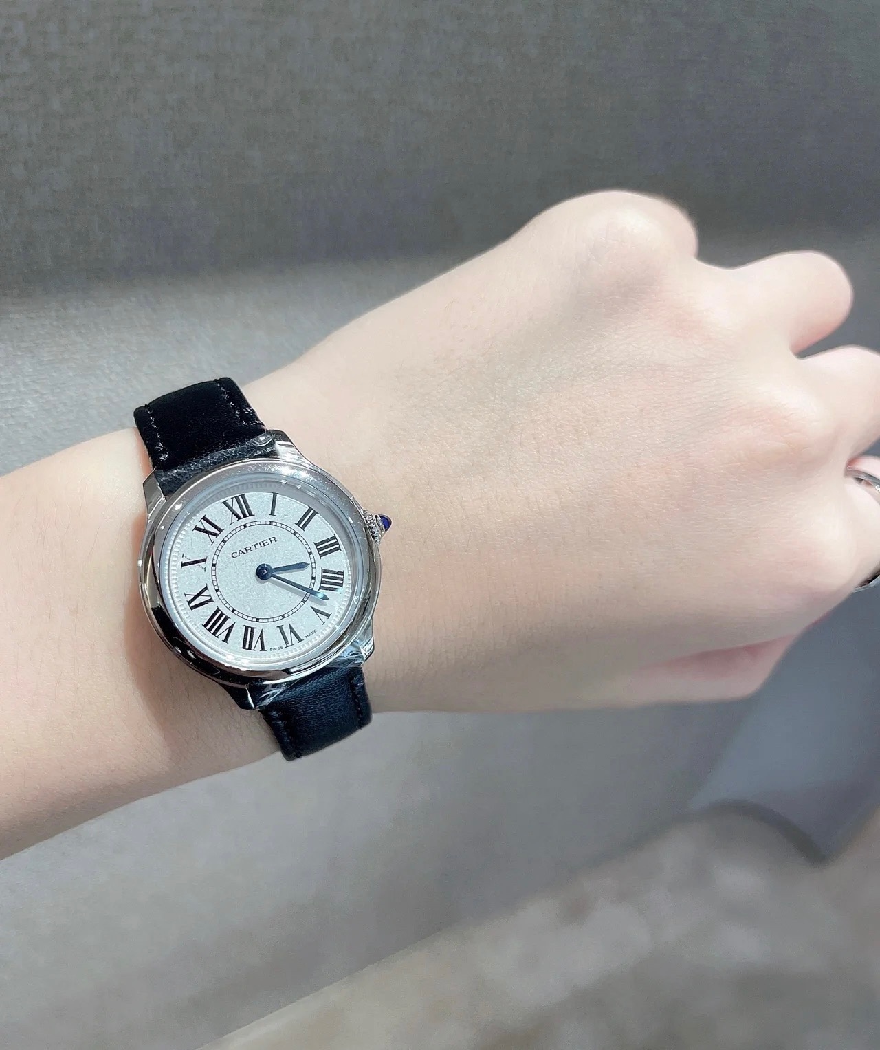 Cartier Ronde Must London series quartz watch! The new Ronde Must series of watches inherits the classic round shape, has a smoother case, and a more exquisite dial design, and is back with a new look! Renewed dial: The bezel is more plump and rounded, and the silver sandblasted dial is equipped with minute and second tracks and embossed decoration! Simple and elegant, timeless. Unique crown: set with a cabochon of synthetic spinel! Exquisite and elegant, it highlights the style of the watch. Dial diameter: Large 4mm. The movements are all made of Lambda movements imported from Switzerland, and cover the same movement deck as ZP! Original 1:1 mold opening, focusing on Cardea, 🧚️🧚️🧚️