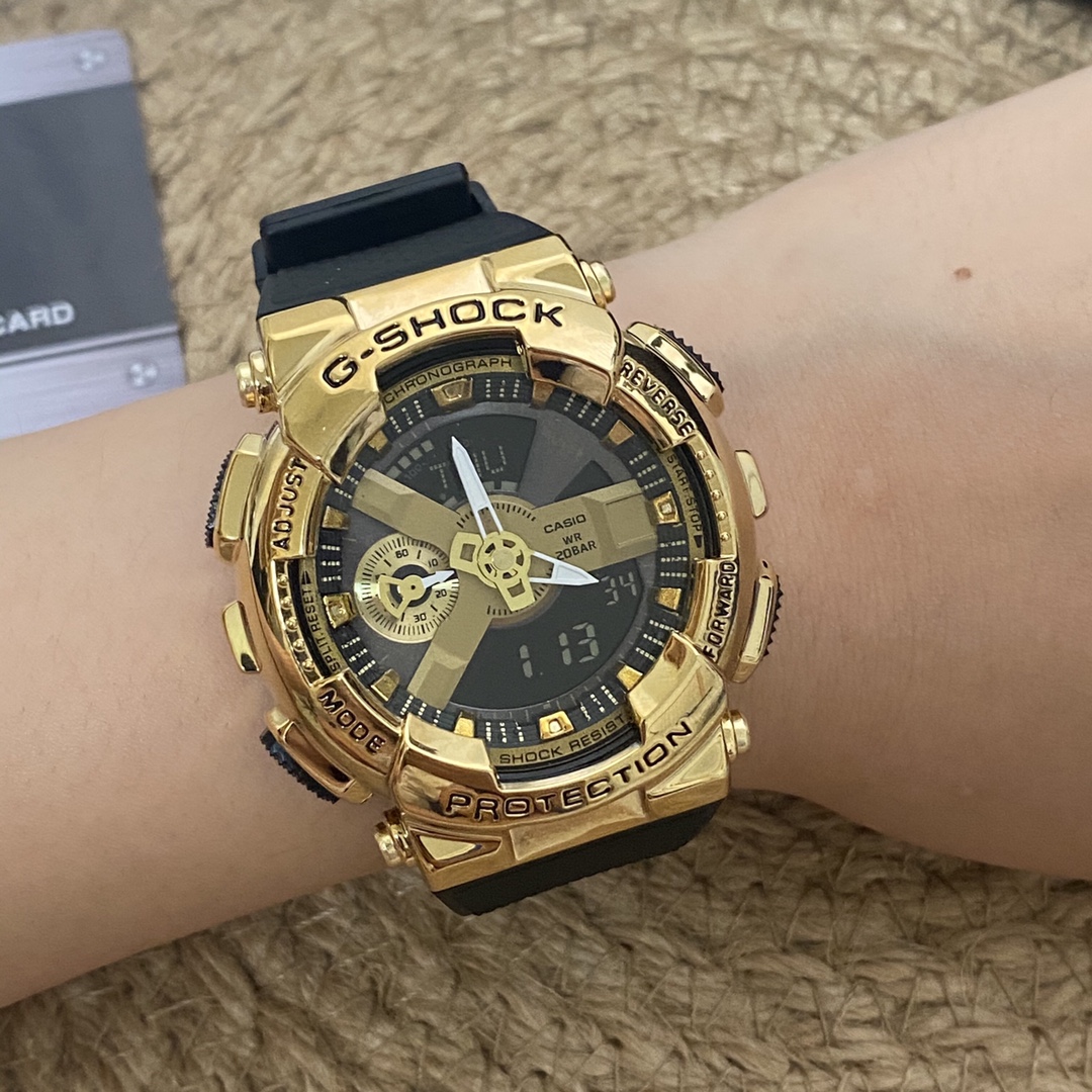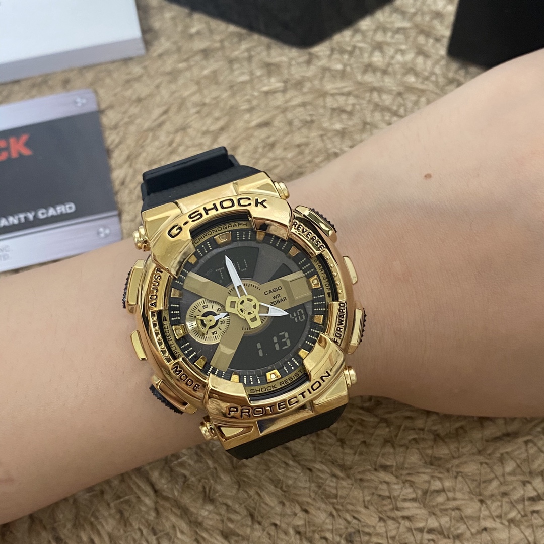 CASIO Casio G-SHOCK Rainbow Metal Style Trendy Watch GM – [Same as Bai Jingting] The trendy arena is about to start the cool debut of metal armor. Based on the GA- series, G-SHOCK has evolved and reborn to launch a new metal case series GM – adding metal armor to the watch to create a trendy fighter on the wrist! Dial size: 44mm Dial material_Strap material: Stainless steel_Resin color: Gold Silver anti-magnetic and impact-resistant gold-plated ion shell Life-proof waterproof hand-raised lamp with counter full set of packaging Movement warranty 2 years