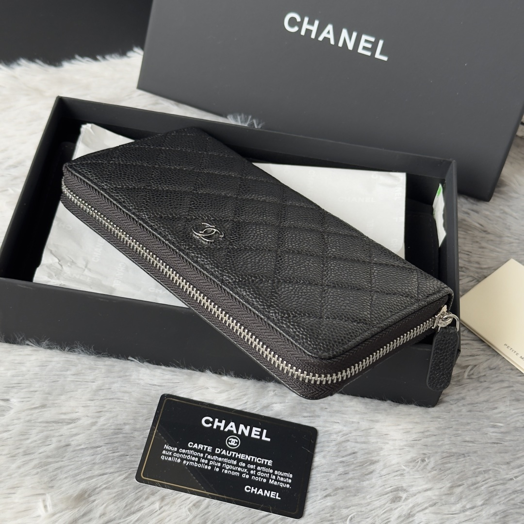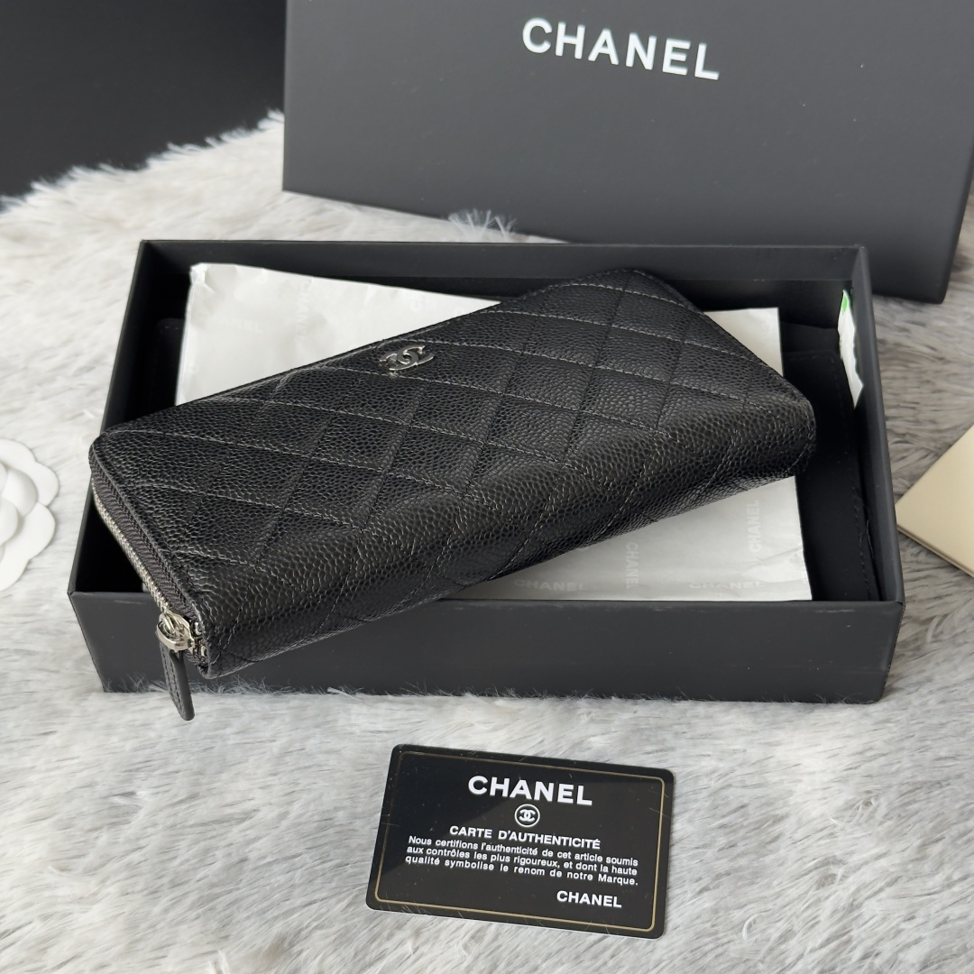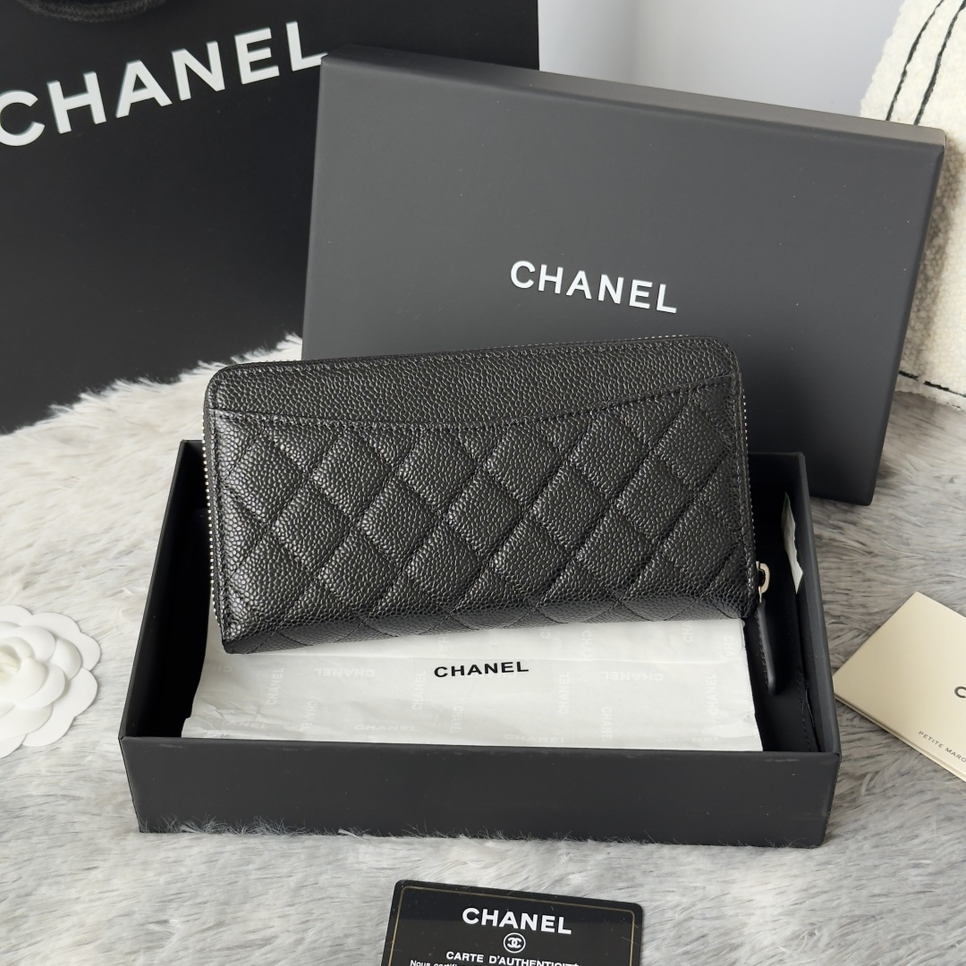 270 CHANEL classic cf long zipper bag has arrived! There are pockets on the back. Classic model of Grandma. Imported caviar cowhide. Large ball rhombus. Very attractive! The bright gold and bright silver buckle hardware is very fashionable. This zippered long wallet is more suitable for storage. It has many card slots and can hold a lot of money! There are also cash compartments and zipper compartments inside, which are very practical! No.: AP0242 Size.4cm