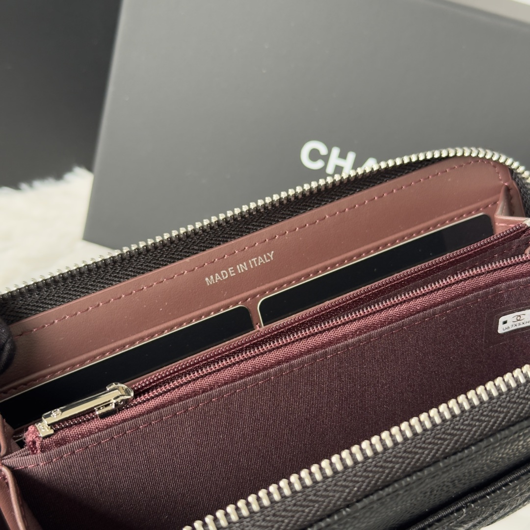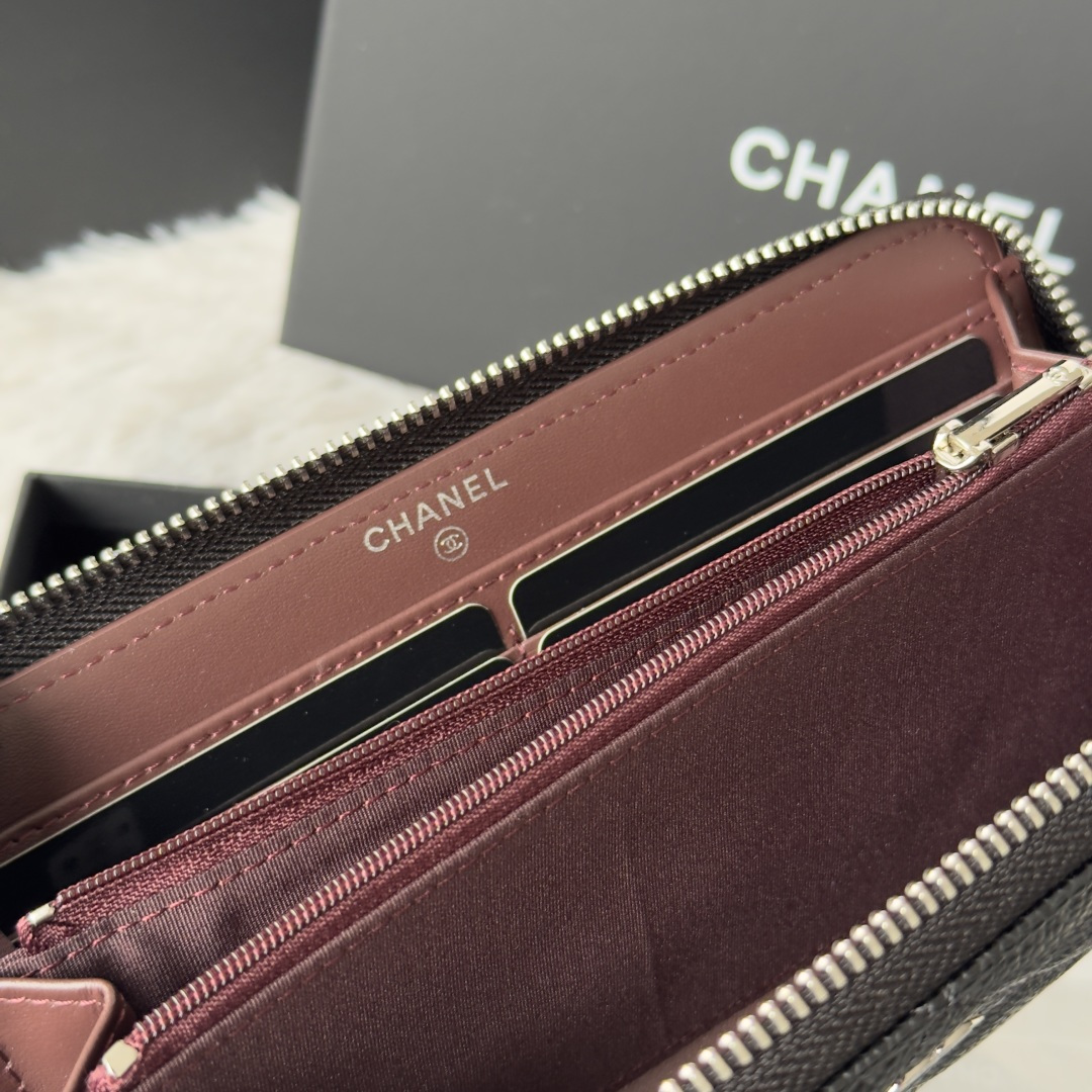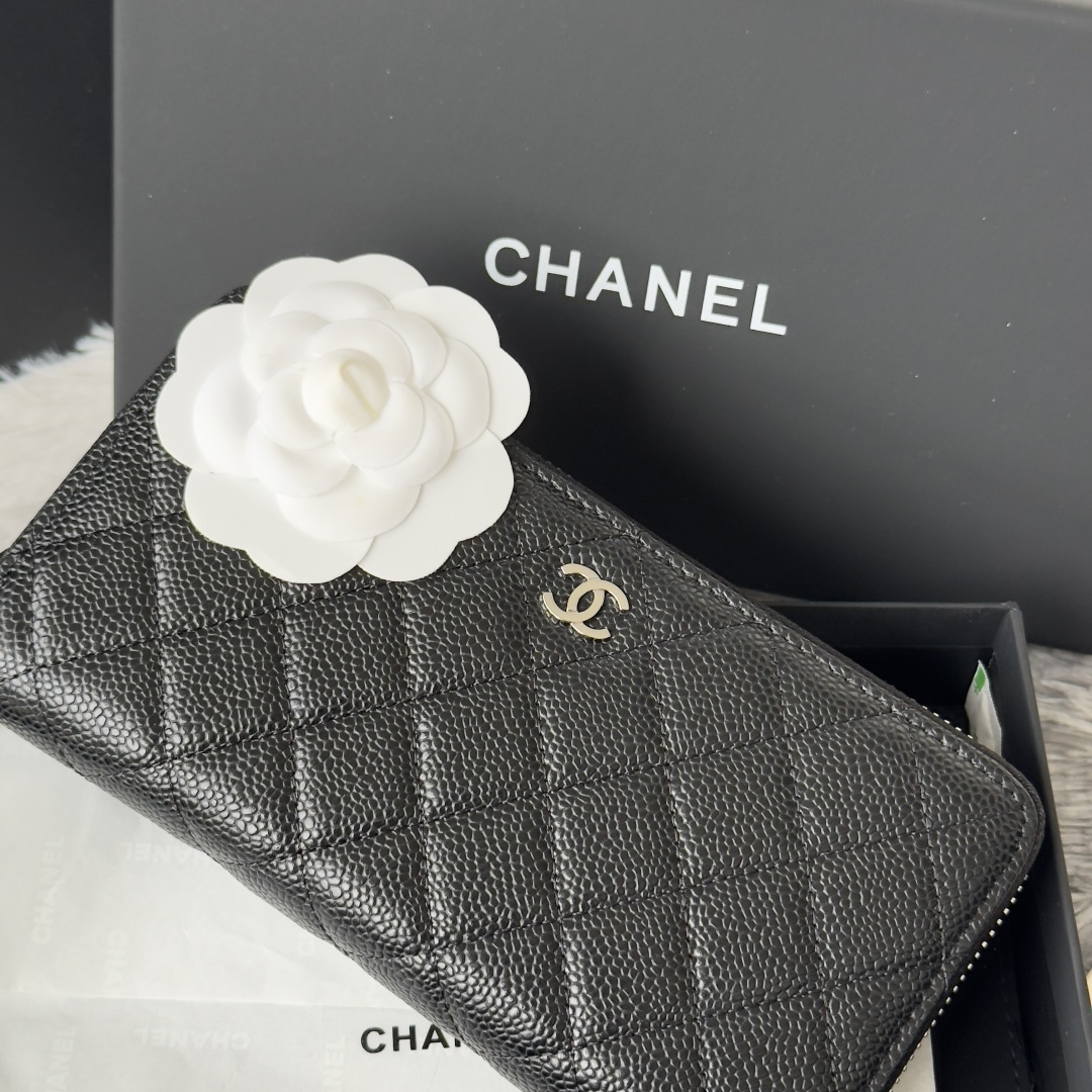 270 CHANEL classic cf long zipper bag has arrived! There are pockets on the back. Classic model of Grandma. Imported caviar cowhide. Large ball rhombus. Very attractive! The bright gold and bright silver buckle hardware is very fashionable. This zippered long wallet is more suitable for storage. It has many card slots and can hold a lot of money! There are also cash compartments and zipper compartments inside, which are very practical! No.: AP0242 Size.4cm