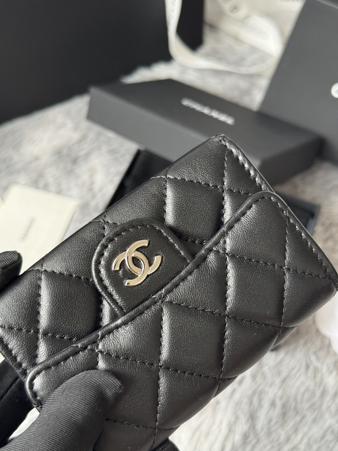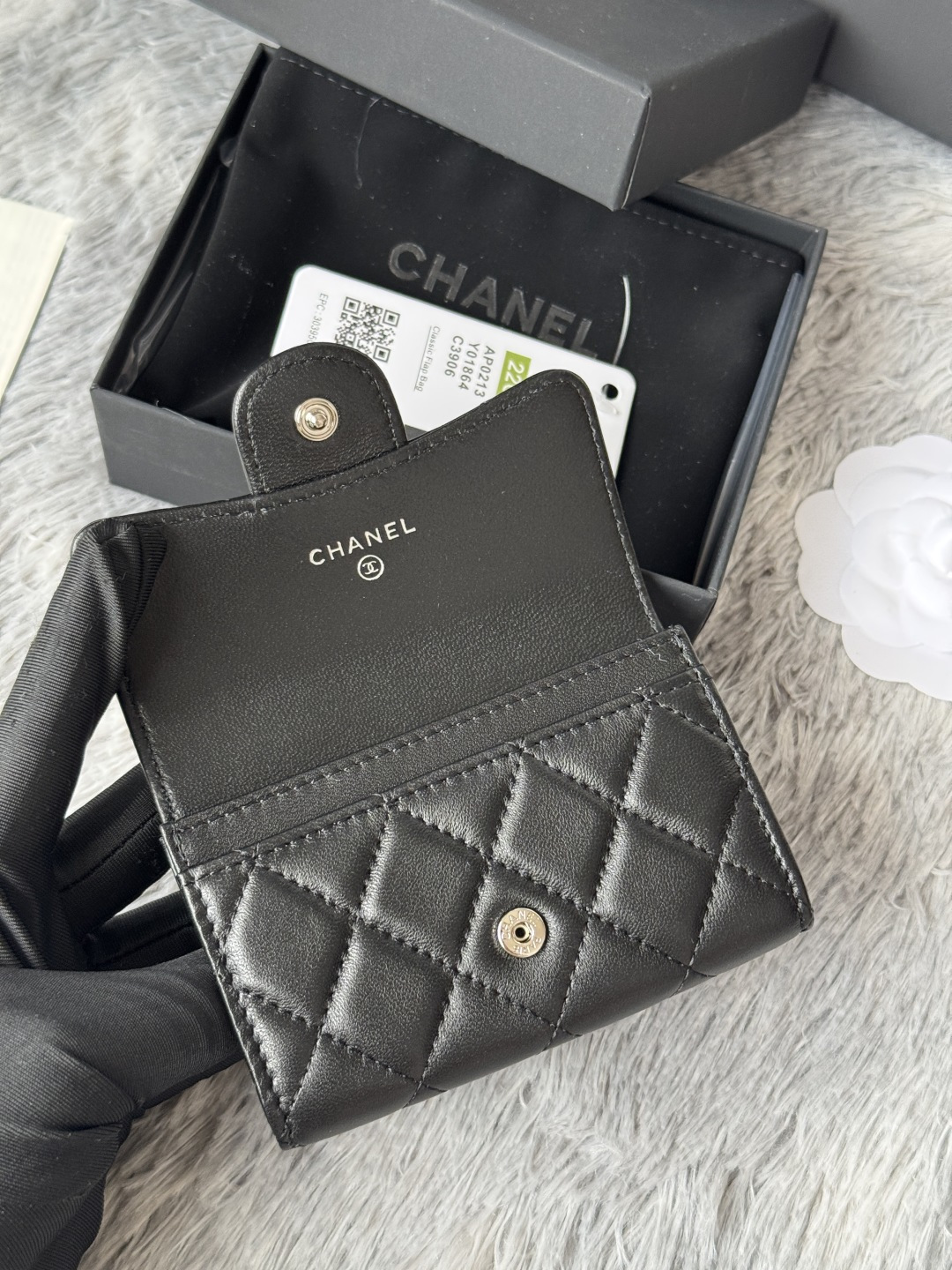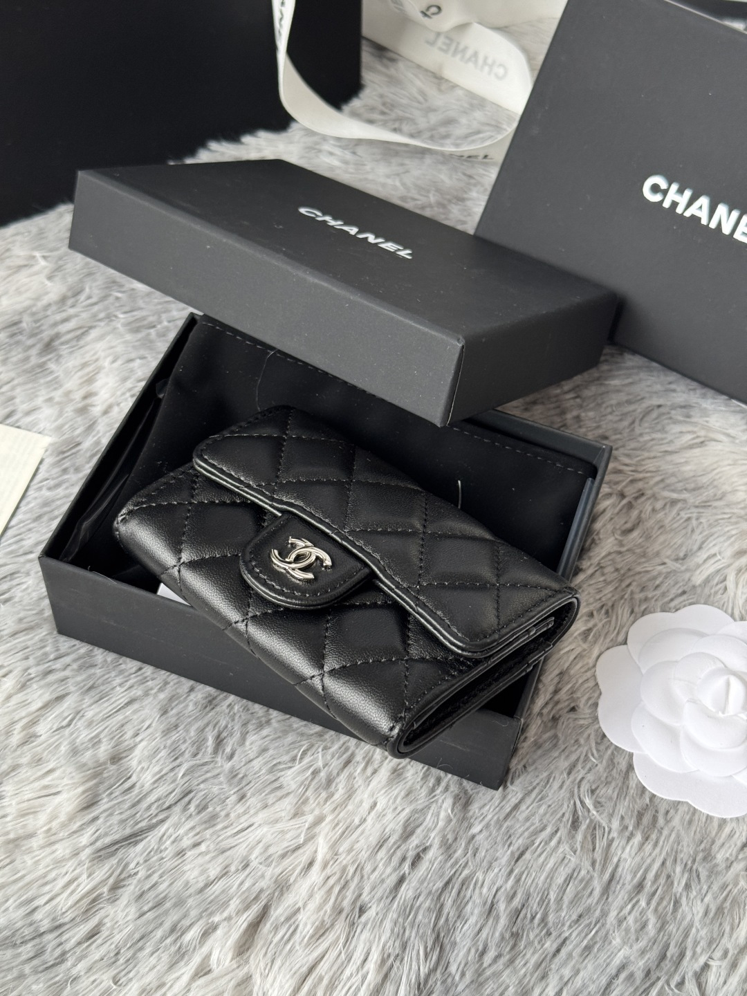 CHANEL lambskin production classic series multiple colors. Color: As shown in the picture, the new CF card bag has arrived! This card holder has an extra card pocket at the back than the previous classic card holder. It is a very practical coin purse that can store cards and change separately. Model number: AP02 Size: 3cm
