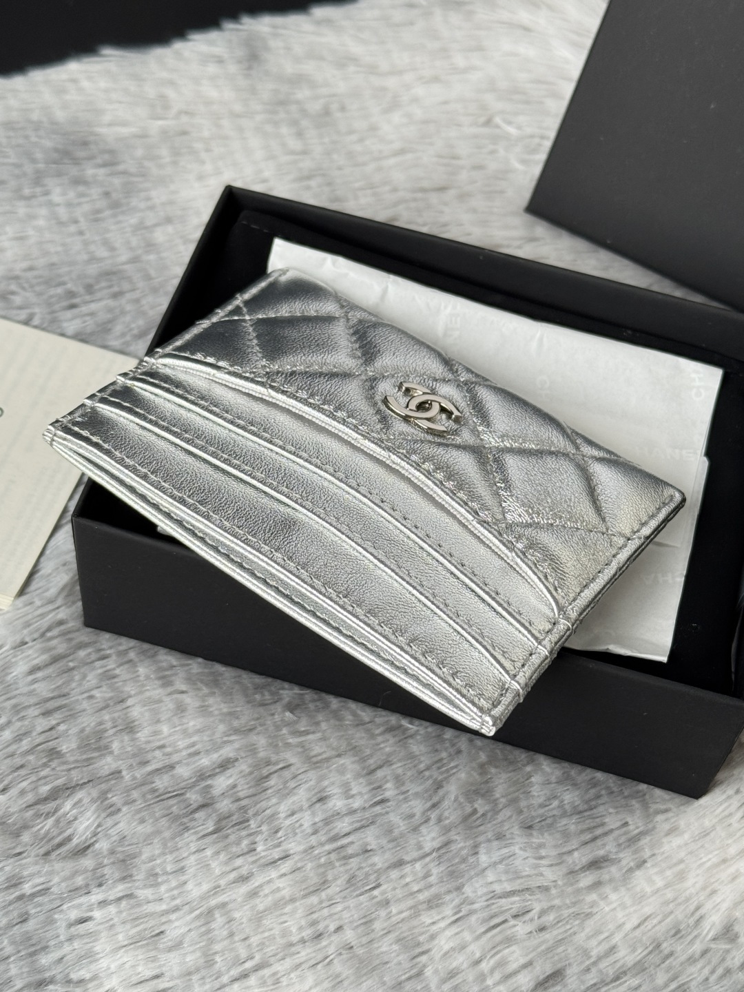 Chanel 2025 new product card holder in lambskin with seven card slots. Can hold change. Made of imported Italian lambskin + hardware logo. So beautiful. I love it. The color is as shown in the picture. It is convenient and quick to store. Mini card holder. No.: AP4472 Size: wcm