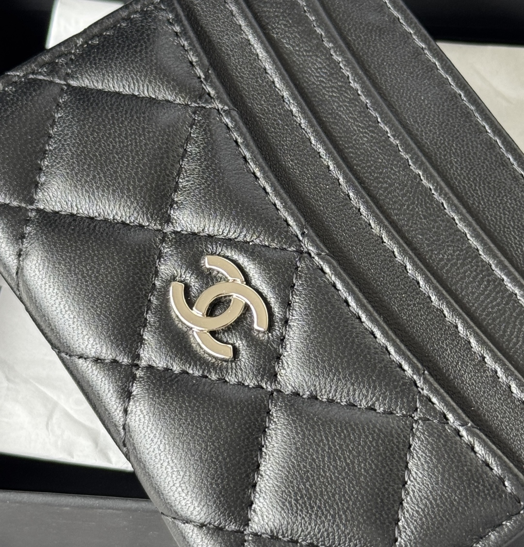Chanel 2025 new product card holder in lambskin with seven card slots. Can hold change. Made of imported Italian lambskin + hardware logo. So beautiful. I love it. The color is as shown in the picture. It is convenient and quick to store. Mini card holder. No.: AP4472 Size: wcm