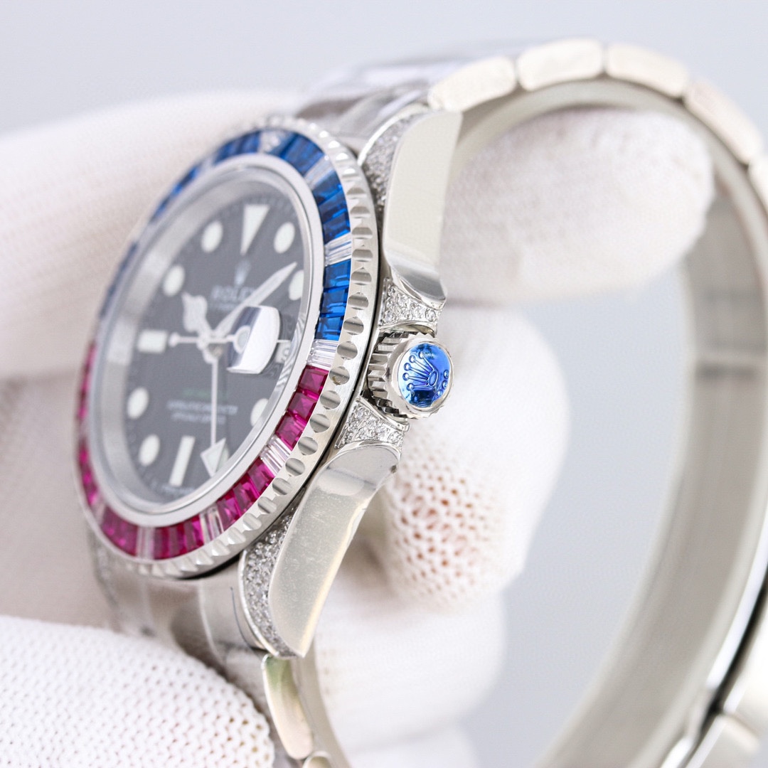 Home Watch Customized version of GMT-Master II with diamonds on the back! It is the best choice for luxury, sparkle and classic trend! 【Case】