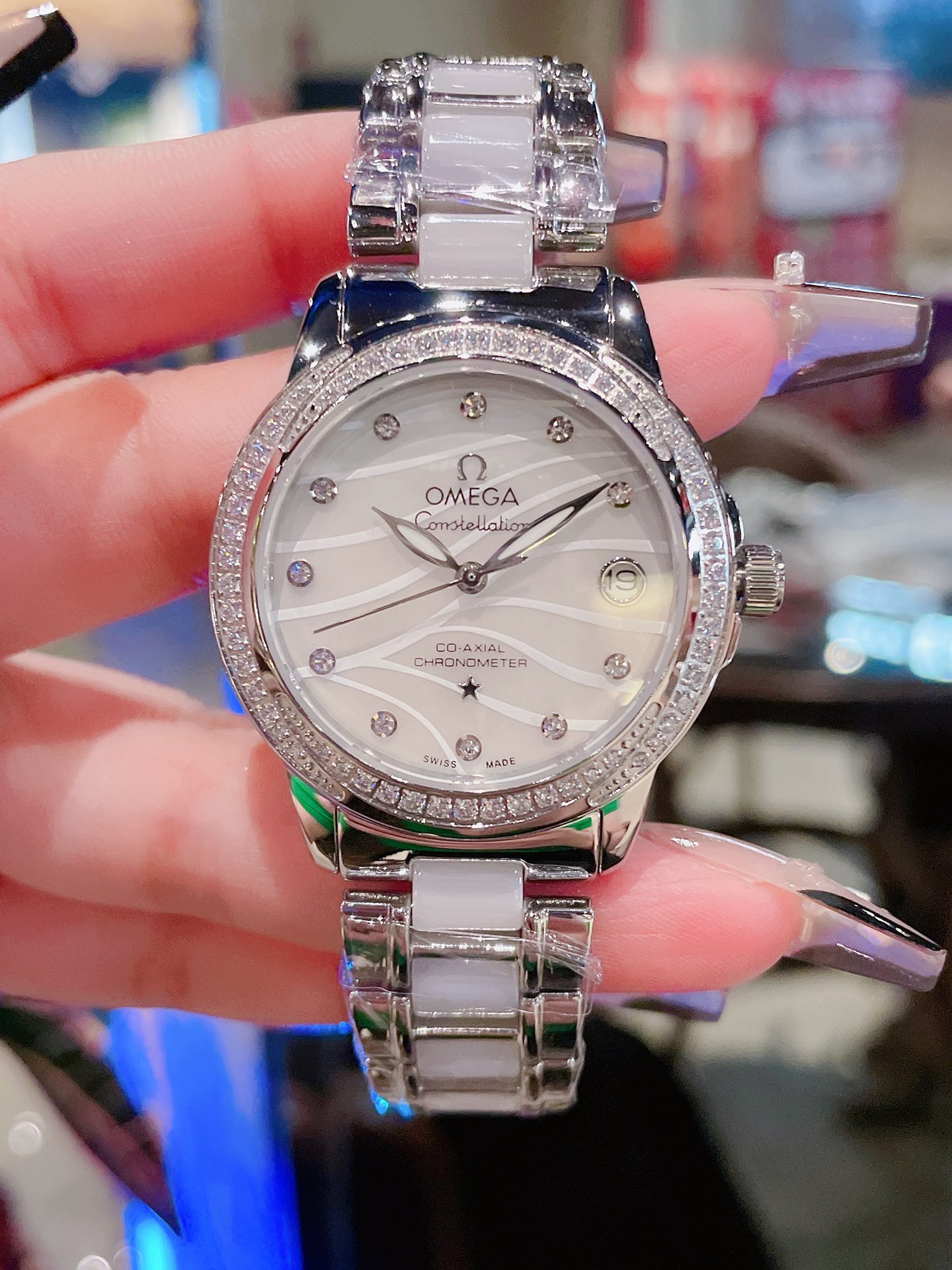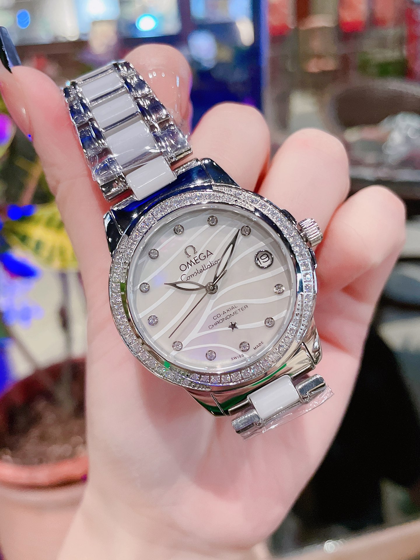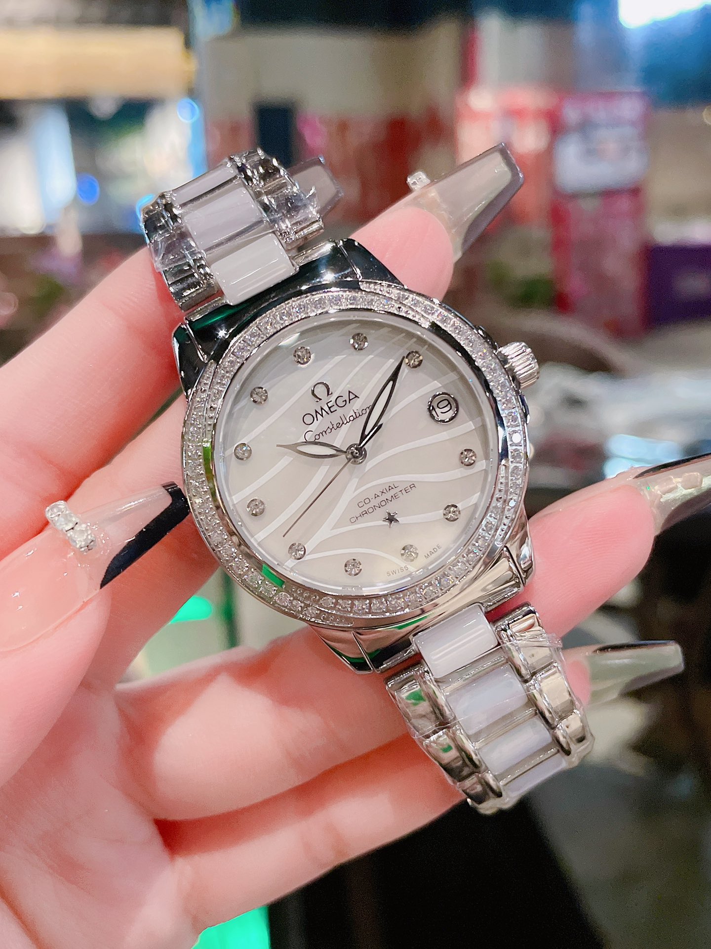 Omega Constellation Series 28mm Swiss Quartz Watch 1. Half-moon section, adjusted gripper details