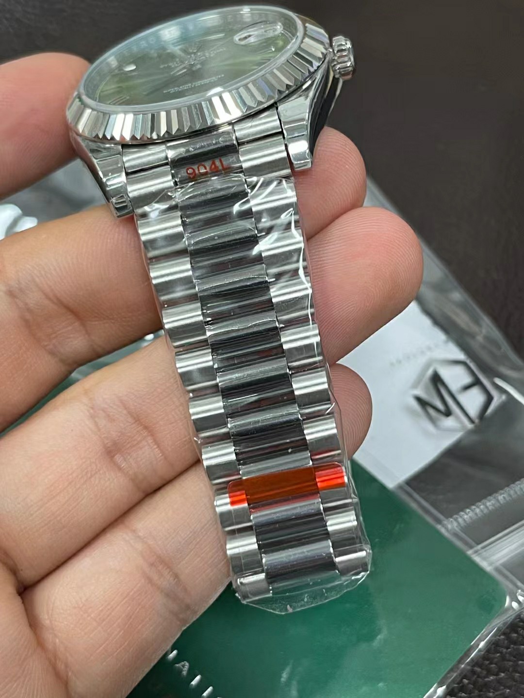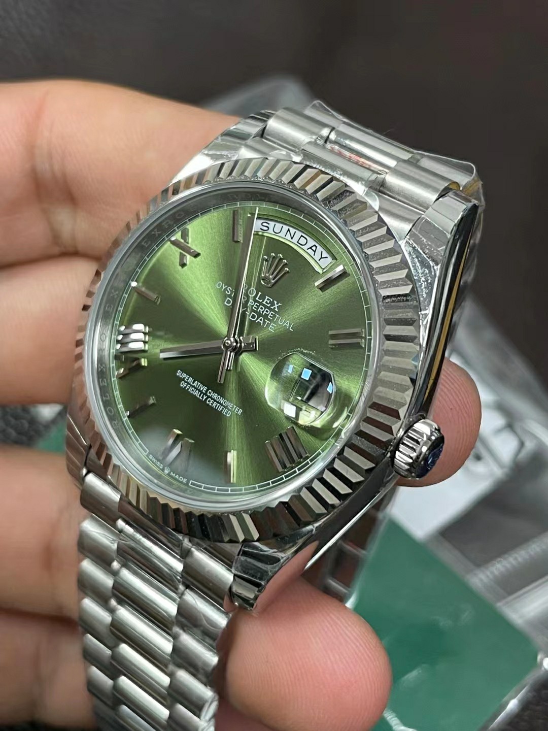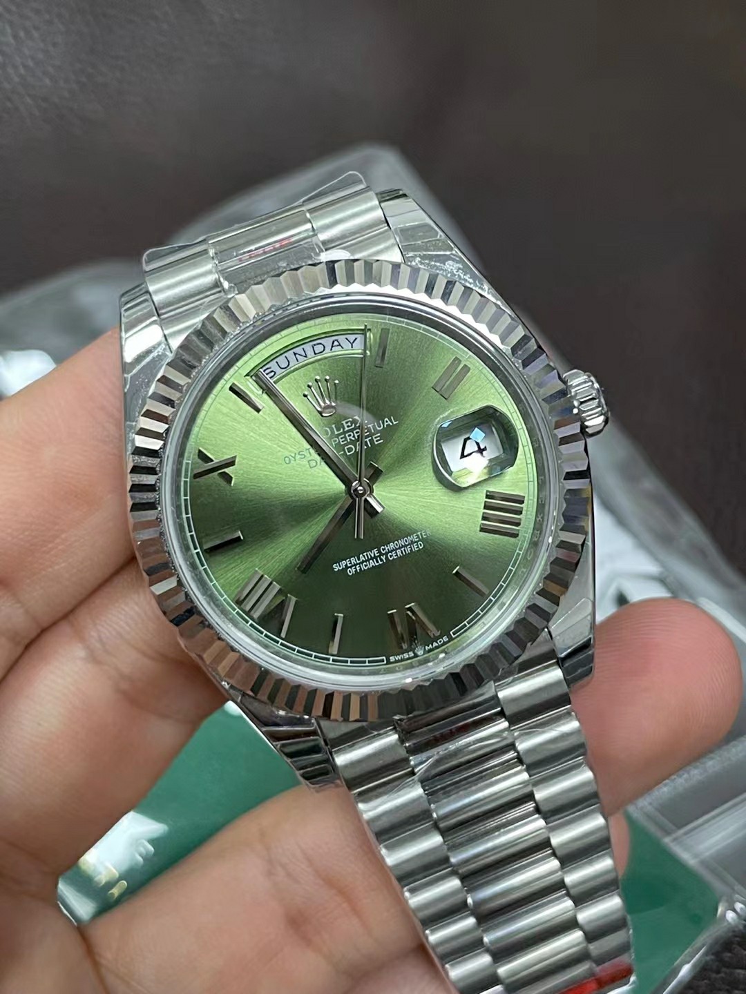 EW Factory 40 size day diary, olive green plate, Roman scale, Seagull 2836-2 movement; instant calendar