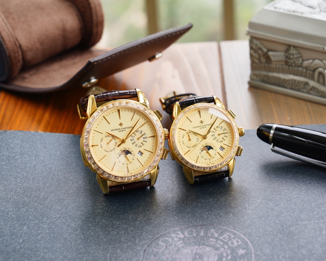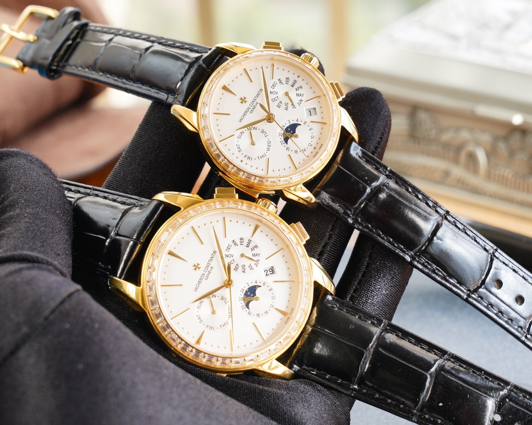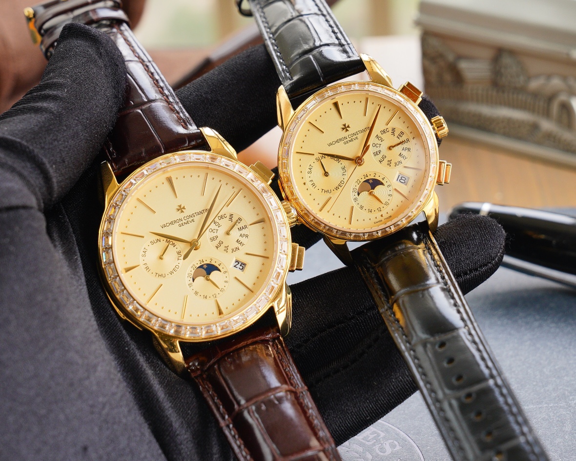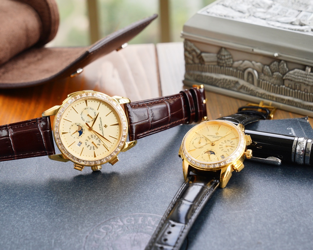 Exclusively developed Vacheron Constantin heritage upgraded version of complex function chronograph series is launched P perpetual calendar couple watch! Small