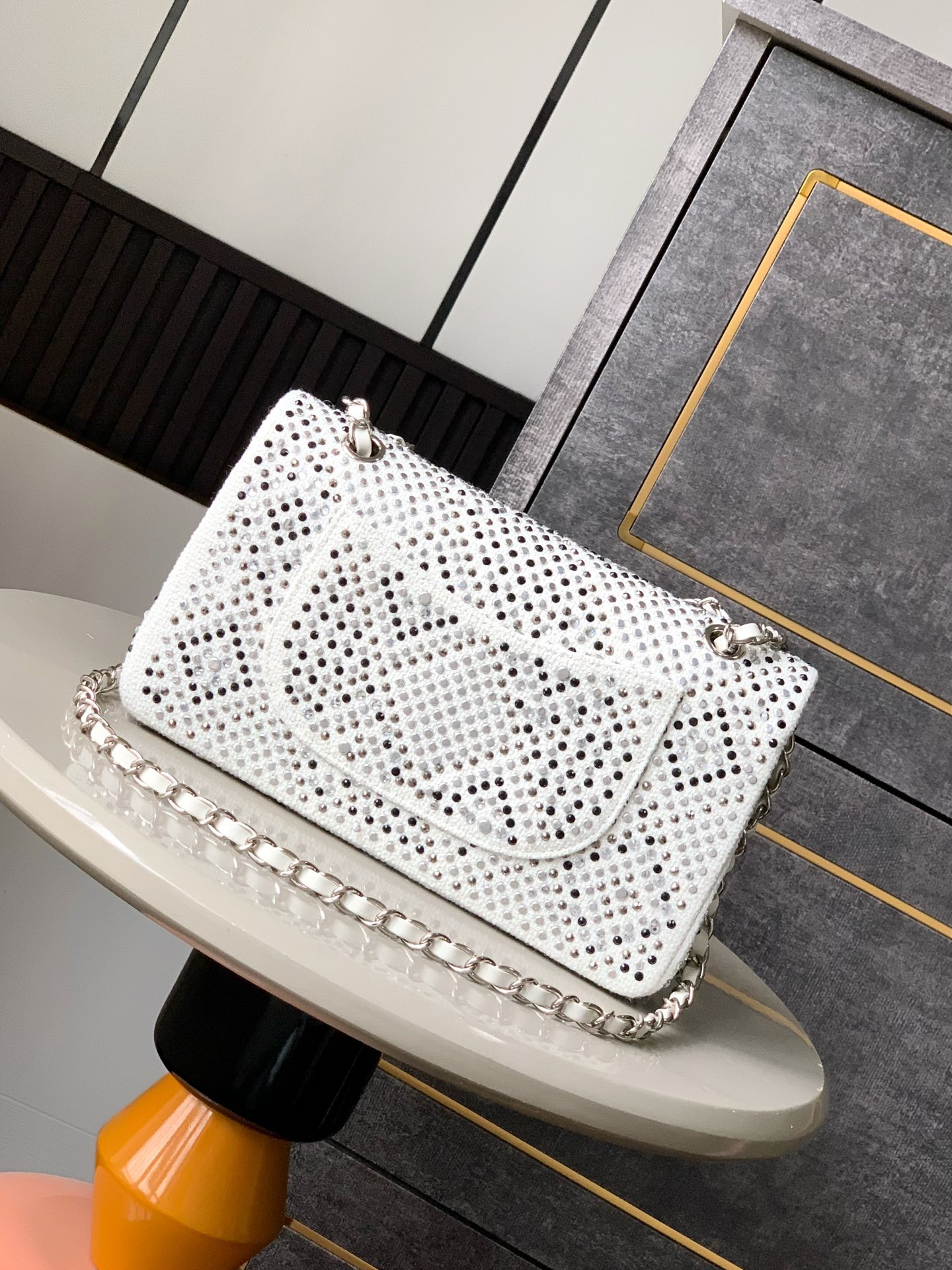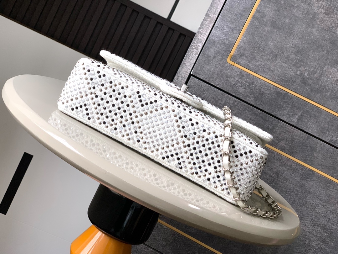 Exclusively shipped “off-white” OHANEL25C double cover, full of diamonds, limited edition series ️Diamond CF is out. It is hard to find a pack in the counter. It is extremely difficult to develop. It is not too dreamy. The full diamond CF style is like stars falling into the world. Every diamond exudes luxurious luster. 🤩The tone of black and white is deep and mysterious. When paired with the luster of rhinestones, it is like the brightest star in the night sky, elegant and delicate. Every angle of the bag exudes beauty. Size: 25.5cm