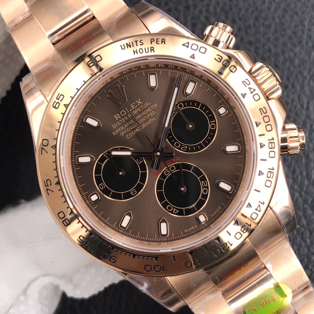 Factory N’s major launch – the Rolex Cosmograph Daytona all-gold series of second-day artifacts, the “trench” inhumanity, appears in the C position! [Movement] The original CAL.4 movement was disassembled and developed. The powerful timing function of the movement. 2. The structures of the two are 95% consistent, and the position of the balance wheel is synchronized. 4L stainless steel uses 2N. The coating is harder, wear-resistant and rough-resistant, and the thickness is close to gold-plated. .Oyster safety buckle with 5mm easy-adjustable chain link extension system. Always imitated and never surpassed, products from Factory N must be high-quality products!