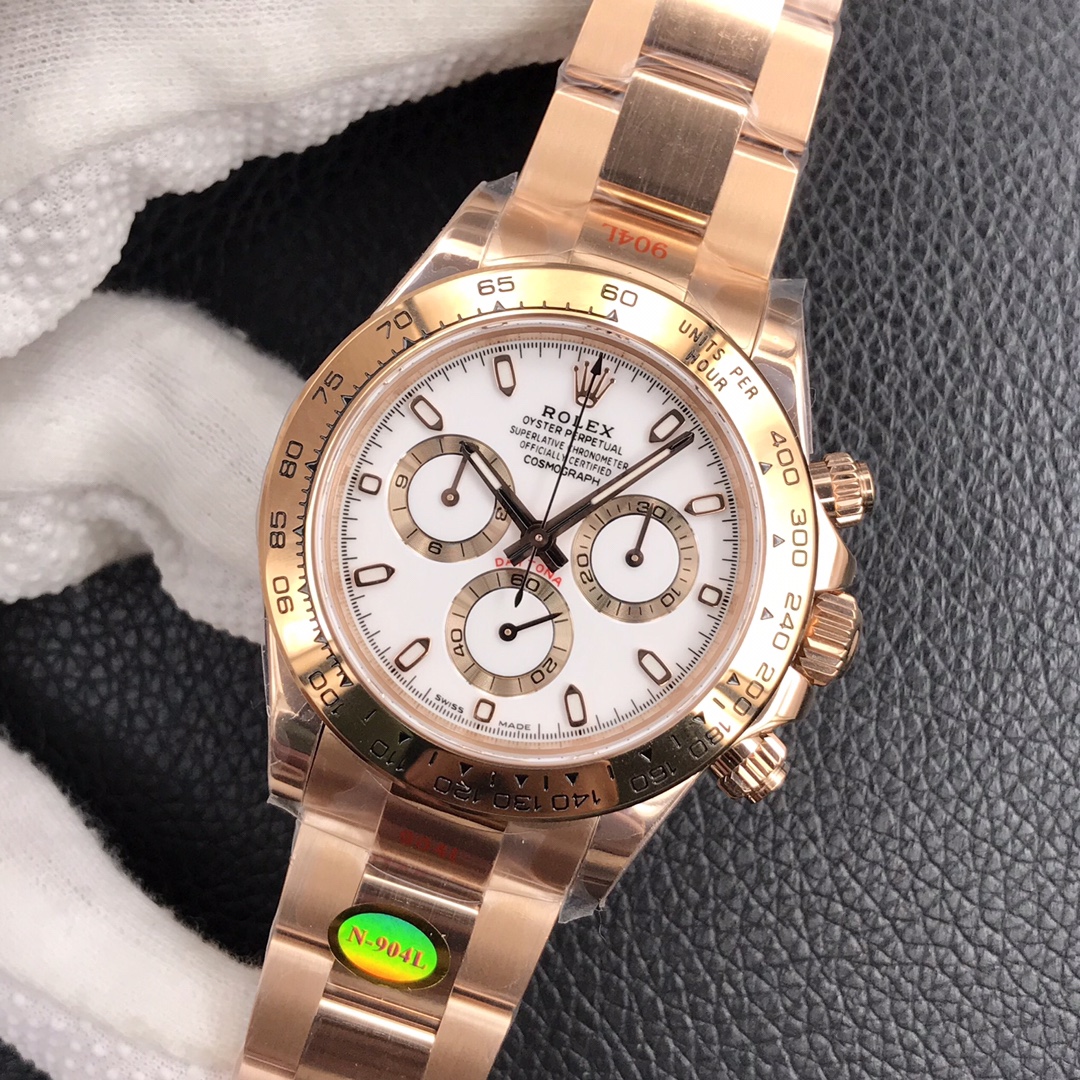 Factory N’s major launch – the Rolex Cosmograph Daytona all-gold series of second-day artifacts, the “trench” inhumanity, appears in the C position! [Movement] The original CAL.4 movement was disassembled and developed. The powerful timing function of the movement. 2. The structures of the two are 95% consistent, and the position of the balance wheel is synchronized. 4L stainless steel uses 2N. The coating is harder, wear-resistant and rough-resistant, and the thickness is close to gold-plated. .Oyster safety buckle with 5mm easy-adjustable chain link extension system. Always imitated and never surpassed, products from Factory N must be high-quality products!