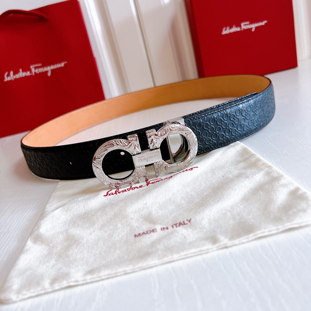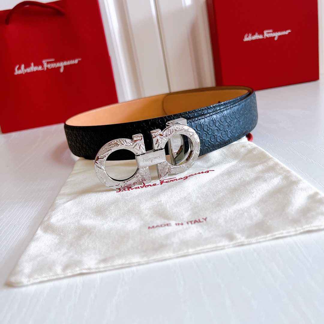 Belt Ferragamo (Ferragamo) double-sided original version, original stitching, 3.4cm same style as in the counter